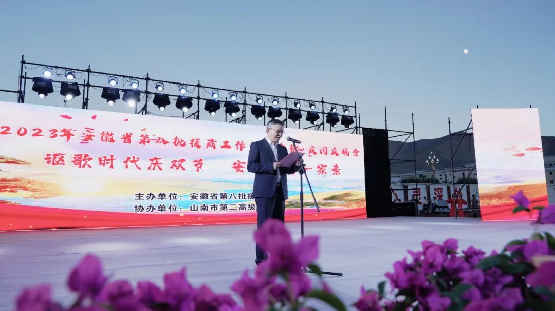 当天,山南市委副书记、市政府常务副市长,安徽省第八批援藏工作队领队单强在晚会致辞中代表安徽省第八批援藏工作队,向参加晚会的老师、同学以及全体援藏队员表示热烈的欢迎,并致以节日的问候。