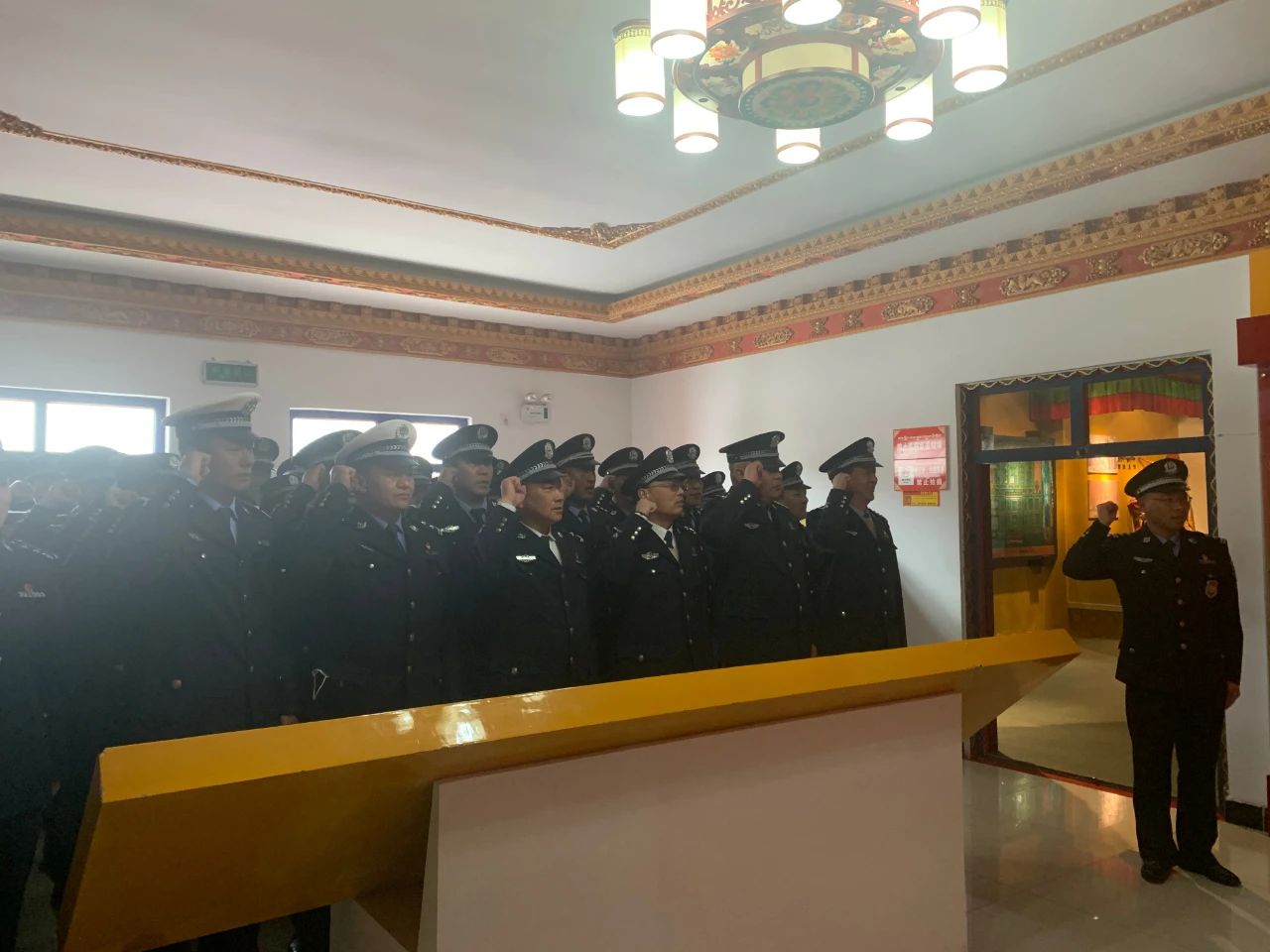 为进一步使广大党员干部深刻感悟中国共产党在西藏践行初心、为民宗旨的光辉足迹,教育广大党员干部“不忘初心、砥砺前行”。3月18日下午,市公安局组织县处级以上领导干部、各部门负责人以及部分民警前往西藏民主改革第一村克松居委会参观历史陈列馆,并重温入党誓词。