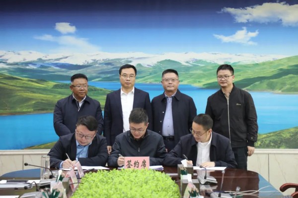 图为深圳市雄韬电源科技股份有限公司、湖北首威能源控股有限公司与山南市人民政府正式签署三方战略合作框架协议。