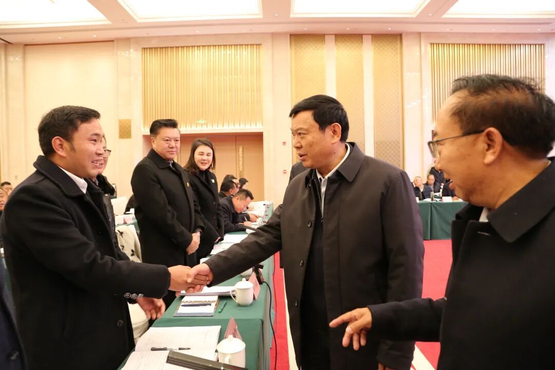 12月25日,山南市党外代表人士暨民营企业座谈会召开。李富忠与民营企业家代表握手。