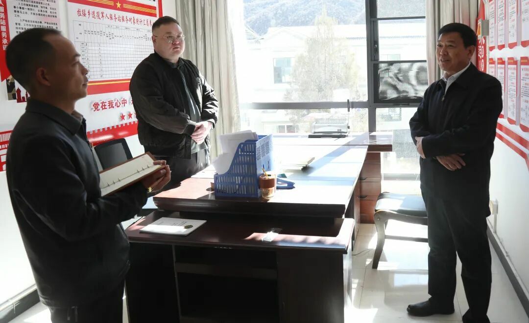图为李富忠在加查县各乡镇、村(社区)了解人员配备、流程机制、矛盾纠纷排查化解、服务群众等情况。