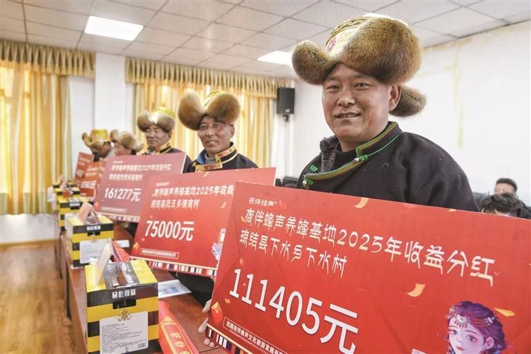 商报讯(记者 旦增玉珍)近日,山南市琼结县农业农村和科技水利局举行了养蜂产业分红仪式。现场依次公布分红金额:“加麻乡昌嘎村161277元、加麻乡白松村159651元、下水乡下水村111405元……”一个个数字背后,是琼结县养蜂产业两年多培育的丰硕成果,更是村民共享发展红利的甜蜜喜悦。