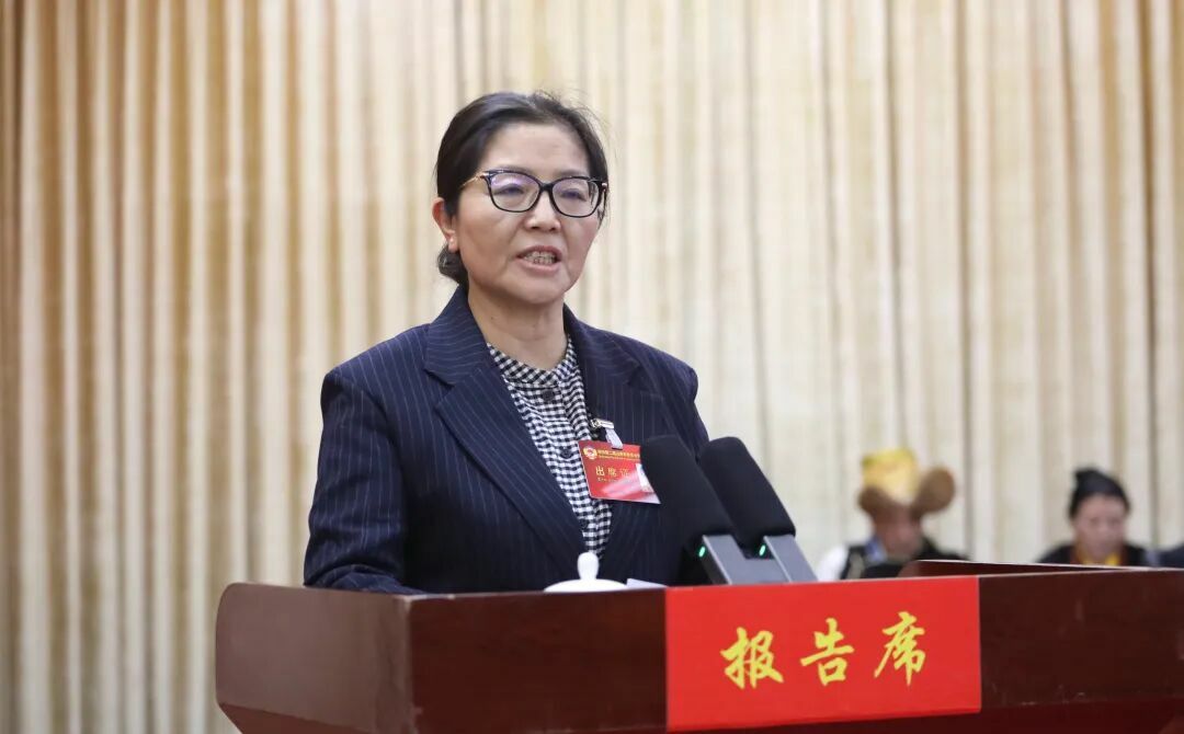 市政协副主席赤列央金代表政协第二届山南市委员会常务委员会,向大会报告工作。
