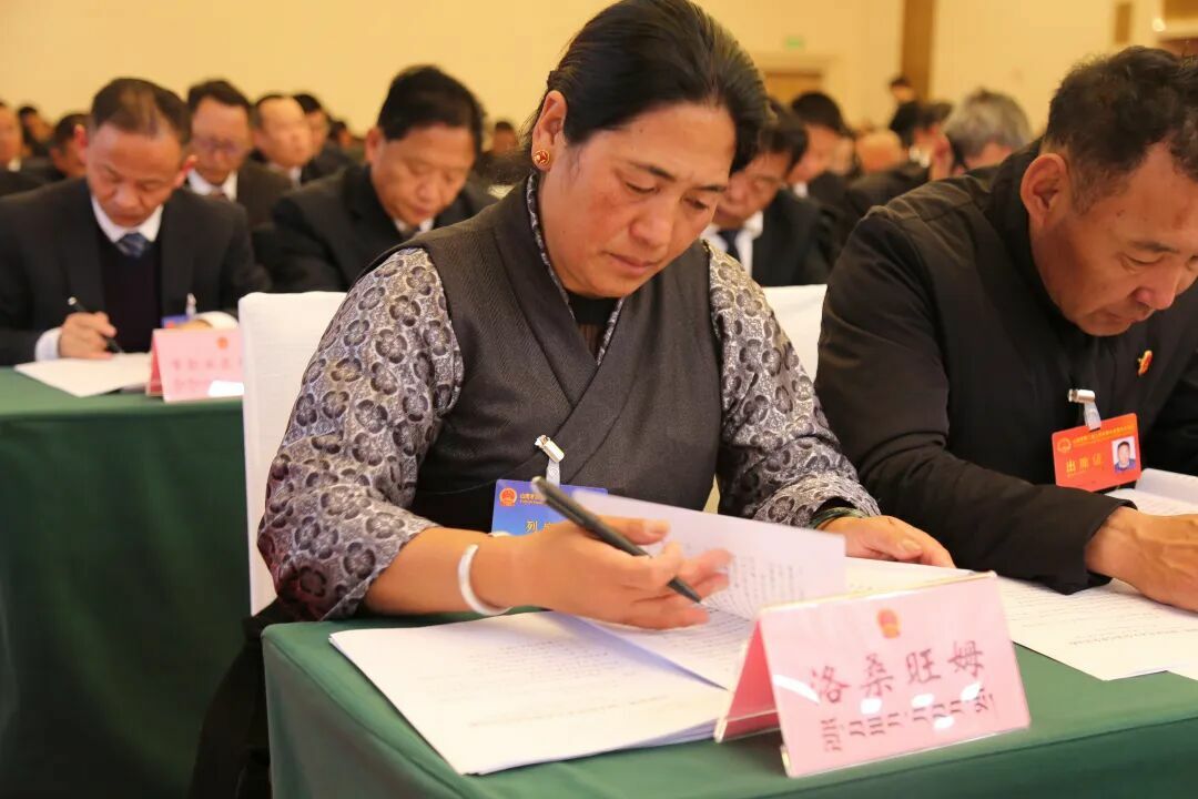李富忠、李亚祥、沈百存、索朗多吉、赵天武、平措扎西、晋美、巴桑欧珠、翟坤、姜艳红在主席台前排就座。