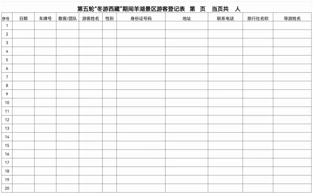 附件:《第五轮“冬游西藏”活动期间羊湖景区游客登记表》模板