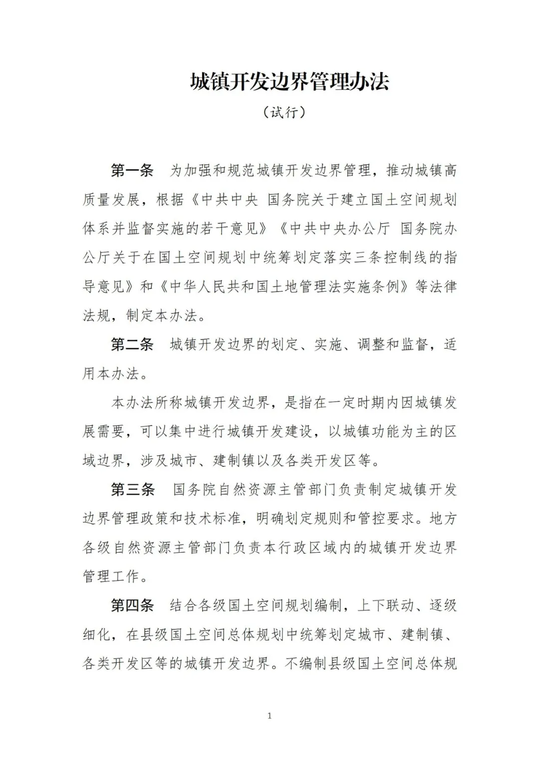 《城镇开发边界管理办法(试行)》已经部审议通过,现印发执行。