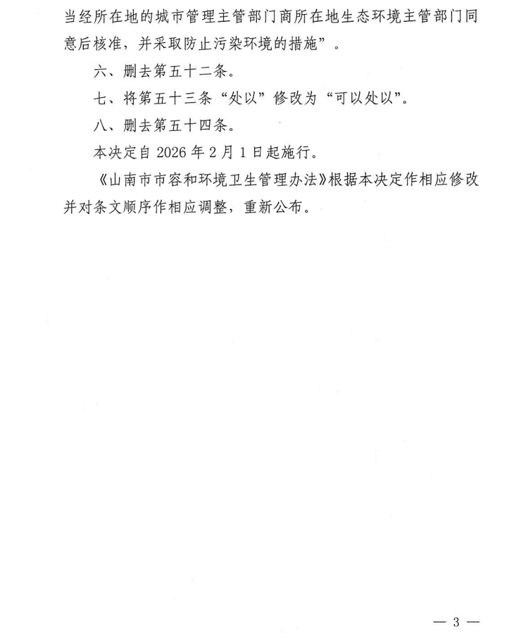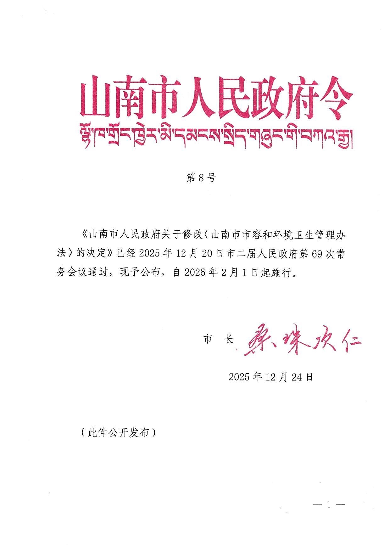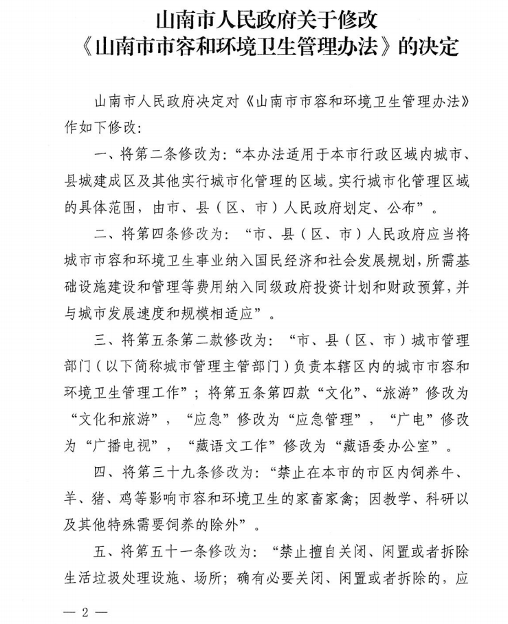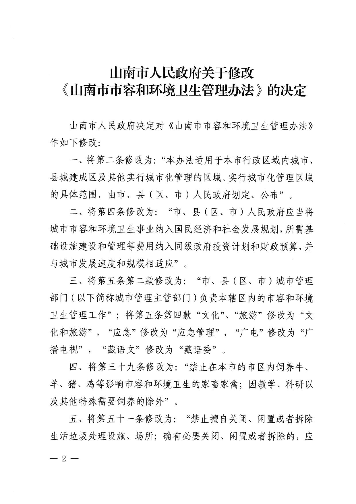 山南市人民政府关于修改《山南市市容和环境卫生管理办法》的决定