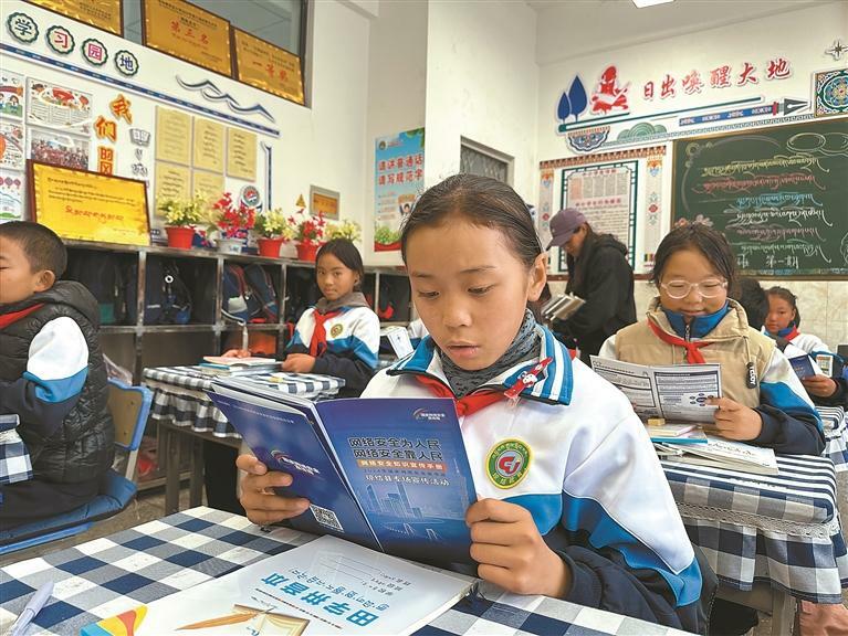 图为琼结县新时代文明实践中心理论宣讲志愿服务队走进琼结镇完全小学,向学生宣讲网络安全知识。本报记者 巴桑旺姆 摄