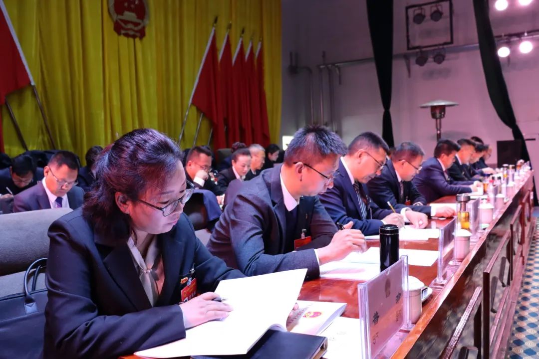 会场气氛庄重热烈,主席台帷幕正中,庄严的国徽在鲜艳的红旗映衬下熠熠生辉。