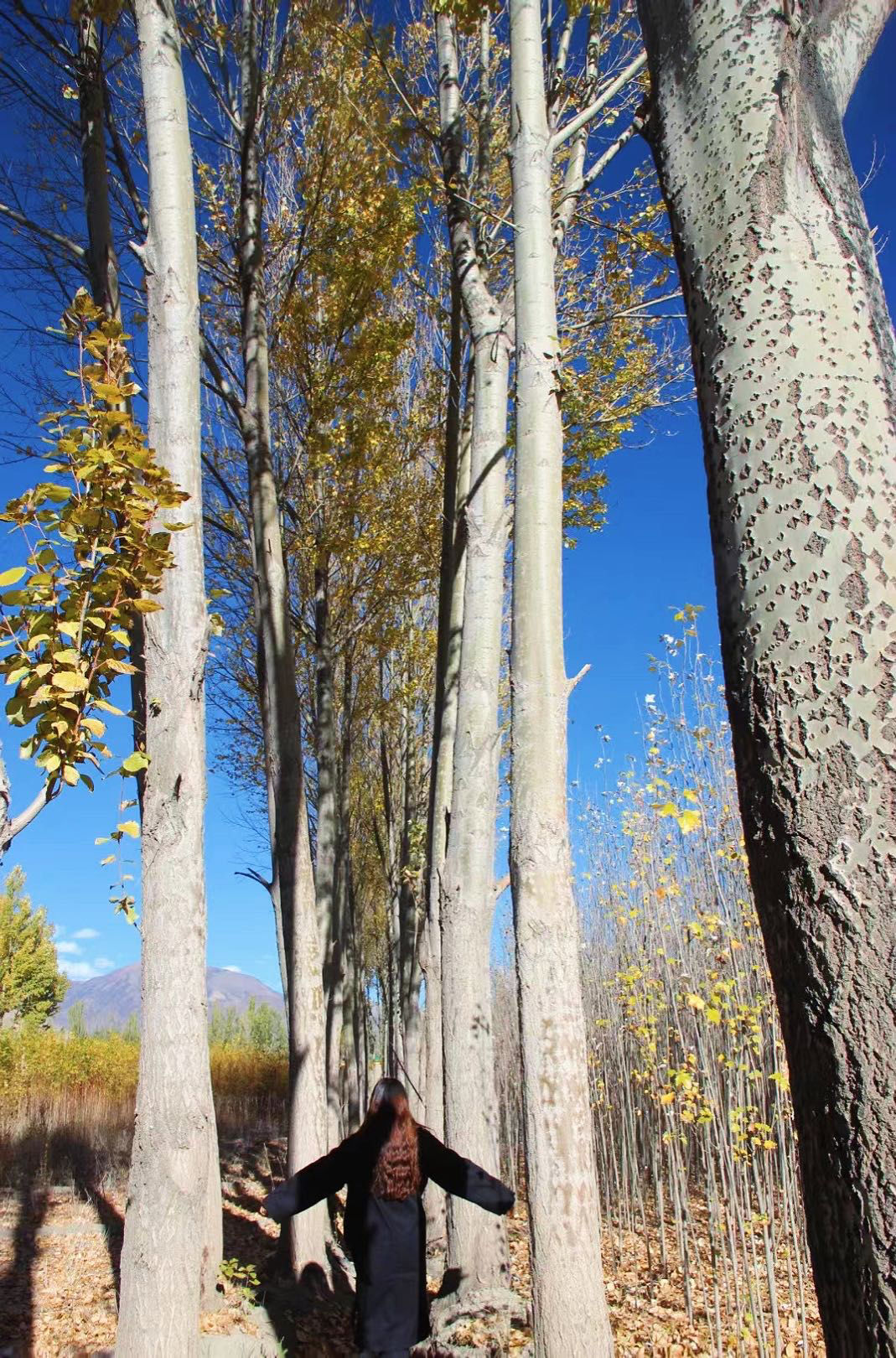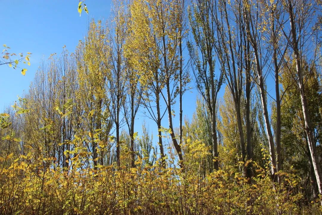 就这样秋天来了,身边的事物都开始变化了。这个时候,蓝天除了跟雪山很搭,跟黄叶更是明信片级别的视觉享受。