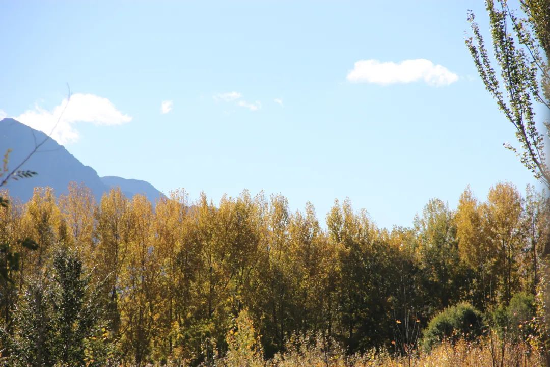 西藏的秋天,总是来得晚、过的快。9月底还开满了各种野花,现在已经是彩林遍布,黄绿相间。防护林像黄色的分割线,将河谷里的各个村落间隔开。 秋天的雅江,大自然的黄色画笔勾勒着黑土地的轮廓,江岸两边,藏家屋顶升起徐徐炊烟,远处的防护林像“黄色”丝巾,挂在绿色的山腰,再加上蓝天白云、雪山标配,既有青藏高原的冷峻,又不失烟火气,随手一拍,就是一幅生动的西藏乡野金秋图。 雅江的秋,蕴藏着少有人看到的美,大气磅礴;雅砻河谷的秋,护着一方水土岁月静好,温婉清新。 这个秋天,不如就来雅江,在大自然里撒欢。