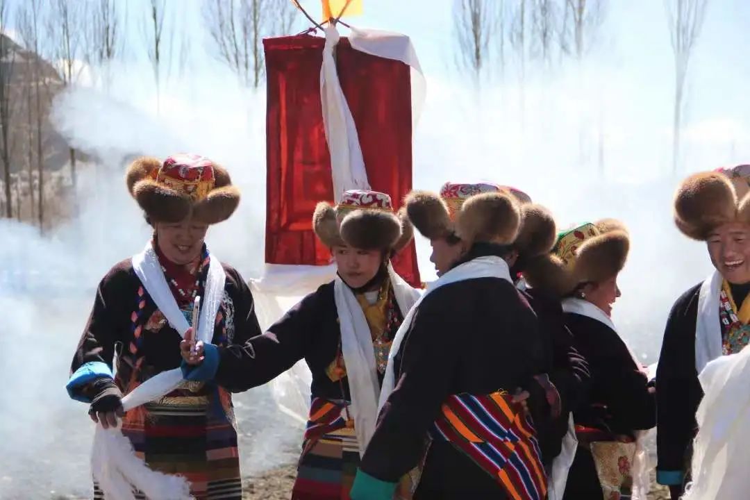 妇女们头戴的“乌折”帽,夏季时天气炎热,“乌折”帽会被折成三角形,而冬天,乌折帽则是全部包住头部,既能暖住头部,也能暖到耳朵,一举两得。这与浪卡子高海拔的地理环境不无关系。