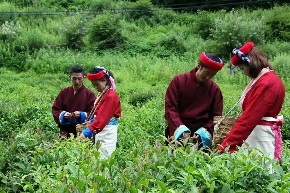 戴帽子的时候,男子缺口在右眼的上方,女子缺口往后,帽子的下沿有条彩色的辫子。大红色的帽子,再加上鲜明的配色,十分夺人耳目。过去,一到重大节日或者活动的时候,男女都戴,村居里、山野间,跳舞、歌唱、采茶……都是耀眼的“小红帽”。而如今随着生活的变化,小女孩戴得依旧较多,一般两岁时就开始戴,而男孩戴的则慢慢减少了,只有村里的老人,不论男女,还保持着传统的遗风,经常戴着小红帽。