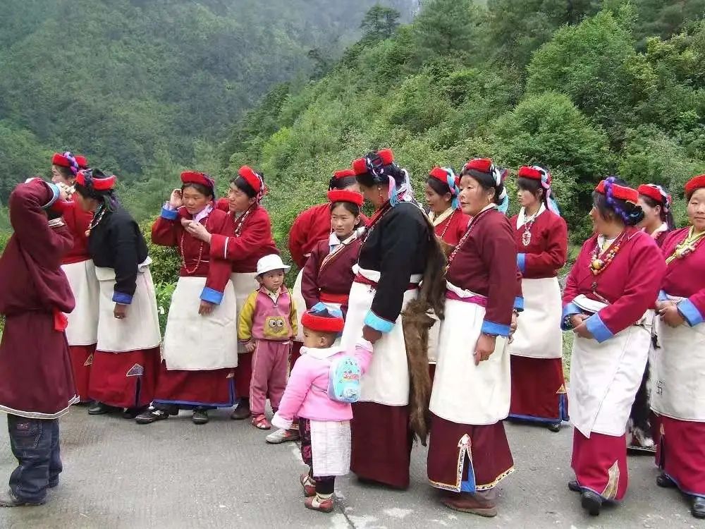 为了永记这一化干戈为玉帛的日子,“赠如”妇女的发辫放在左边,“棍如”妇女的发辫放在右边。影响最深的,就是“棍如”妇女,她们将相似于仓央嘉措头束的黑氆氇头巾叠成三角形,戴在头上。顶头角指仓央嘉措,前后角分别指“赠如”和“棍如”。随着历史的发展,现今已形成了工布学乡苏格村妇女一种独特的服饰。名叫“乌折帽”,“乌”是“头”的意思,“折”是“束”的意思。