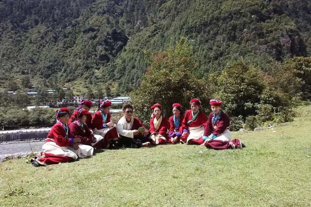 而错那县勒乡,也是“隐藏地”之一。这里的门巴文化习俗受到藏民族文化的影响,但其独特的气候条件、生活方式、审美观念造就了独特的门巴服饰。红色,自古以来就赋予了“喜庆”的寓意,而在错那县勒乡因为门巴族的繁衍生息,红色,成了这里习以为常的颜色。