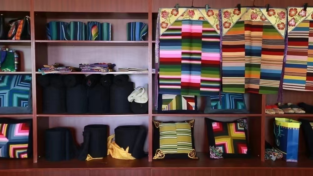 五彩邦典的制作技艺已被列入国家级非物质文化遗产名录 邦典的制作原料主要是羊毛,经过纺线、染色、织图、制坯、裁剪、缝合等一系列复杂的工序 最终制成色彩艳丽、图案精美的五彩邦典