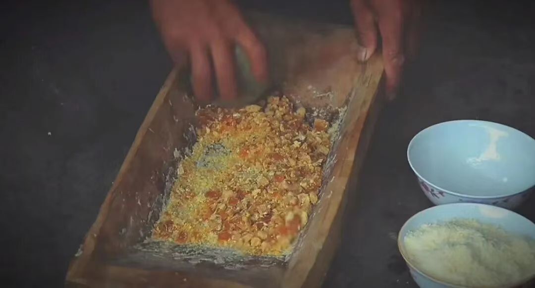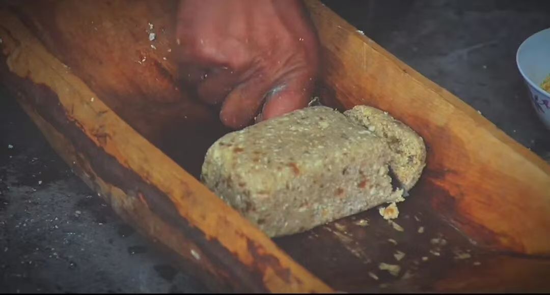 制作核桃奶酪要靠“天帮忙”:清晨挤的牦牛奶或藏牛奶,倒进陶罐里密封,放在阳光晒得到的窗台上自然发酵24小时,直到凝结成嫩滑的酸奶块;然后用纱布兜住酸奶,吊在房梁上滤去乳清,得到绵密的奶酪基底;最后拌入焙香切碎的核桃仁,再撒上高原特有的人参果、葡萄干和枸杞,一份酸甜交织的核桃奶酪就做好了。口感像云朵般柔软,核桃的香脆与奶酪的醇厚碰撞,再加上果干的清甜,吃完油腻的肉食后来一碗,解腻又爽口,老人小孩都爱吃。每逢望果节,家家户户都会做这道甜品,寓意“丰收甜蜜”。