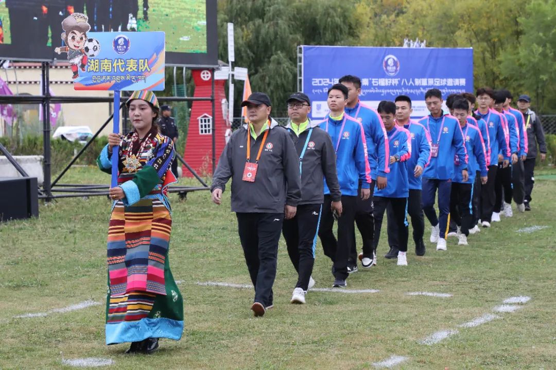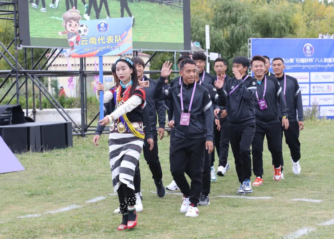 伴随着激昂雄壮的《运动员进行曲》,来自湖南、湖北、四川、云南、青海、陕西、贵州、西藏的9支足球代表队共162名队员以饱满的精神,迈着坚定的步伐依次入场。他们将秉持“友谊第一、比赛第二”的体育精神,力争在本次比赛中创造佳绩,全面展现各代表队团结协作、敢于拼搏的良好精神风貌。