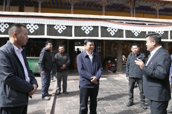 图为李富忠在乃东区昌珠寺考察加强和创新寺庙管理、文物保护等工作。