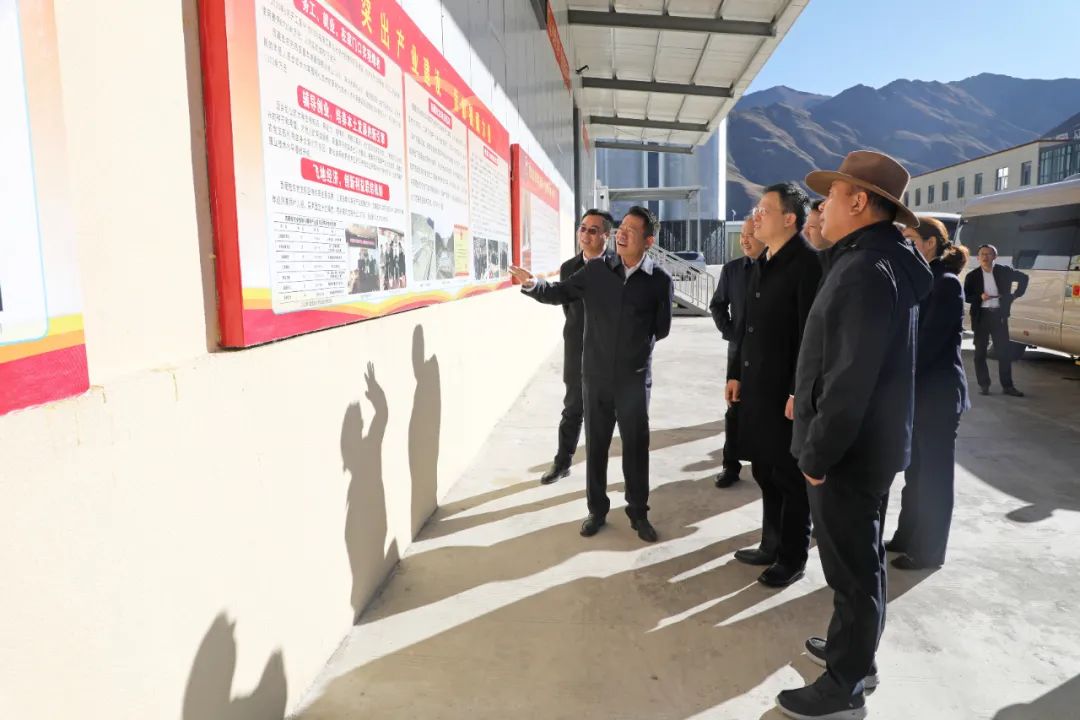 图为王祺扬一行在西藏宏农农业发展有限公司考察。