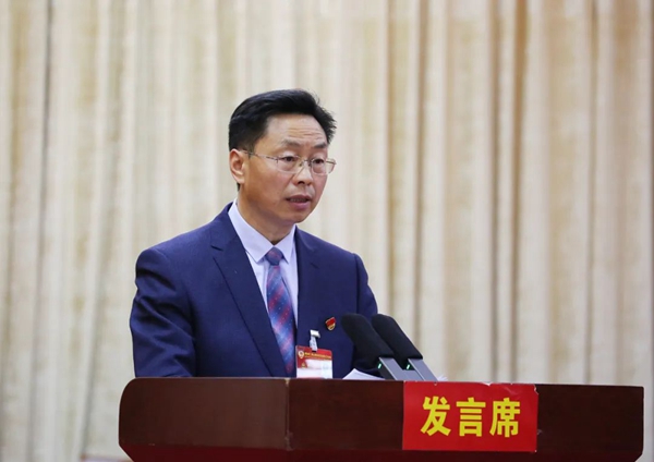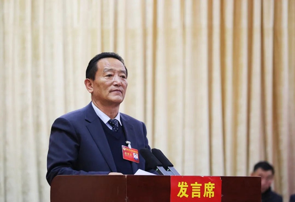市政协主席巴珠代表政协第二届山南市委员会常务委员会,向大会报告工作。