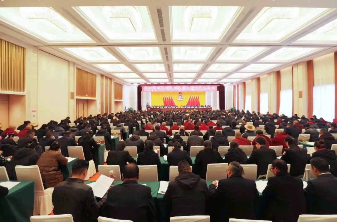 山南市第二届人民代表大会第八次会议12月28日在乃东隆重开幕。这是会议现场。