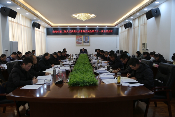 2月20日,市人大常委会主任王德文主持召开市二届人大常委会第六十一次主任会议,传达学习《中华人民共和国监察法》和自治区两会精神,研究市二届人大常委会第二十四次会议议程、日程草案,研究《山南市城市建设管理条例(修订草案)》和市人大农牧城建和环境资源保护委员会的审议意见的报告,研究法治政府建设情况的报告、市政府有关审议意见落实情况报告和市人大各专门委员会的审查报告,研究关于市二届人大常委会组成人员2024年度依法履职情况报告的综合报告、出席人代会和常委会会议情况的通报以及履职评议方案(稿)、工作评议方案(稿)等。