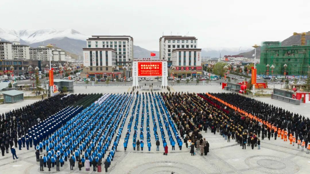 致辞说,在中国共产党的领导下,西藏经历民主改革、社会主义建设、改革开放,实现了从黑暗走向光明、从落后走向进步、从贫穷走向富裕、从专制走向民主、从封闭走向开放的历史转变,创造了旷世未有的人间奇迹。特别是党的十八大以来,习近平总书记亲自为西藏工作把舵定向、谋篇布局,亲自主持召开中央第六次、第七次西藏工作座谈会,先后两次亲临雪域高原指导,为做好新时代西藏工作指明了前进方向、提供了根本遵循。