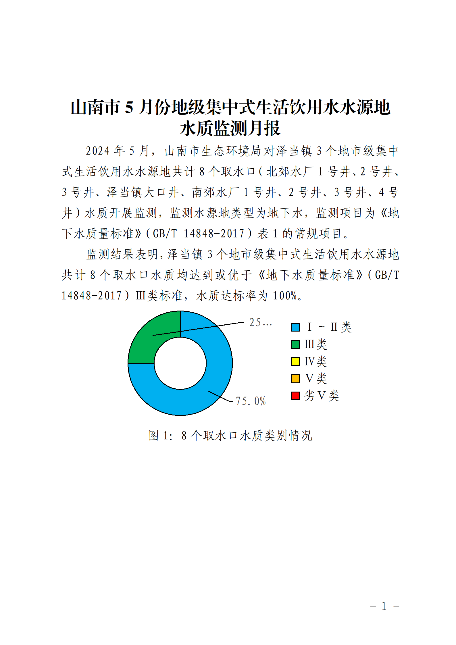 山南市5月份地级集中式生活饮用水水源地 水质监测月报