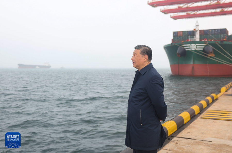 5月22日至24日,中共中央总书记、国家主席、中央军委主席习近平在山东考察。这是22日下午,习近平在日照港考察。