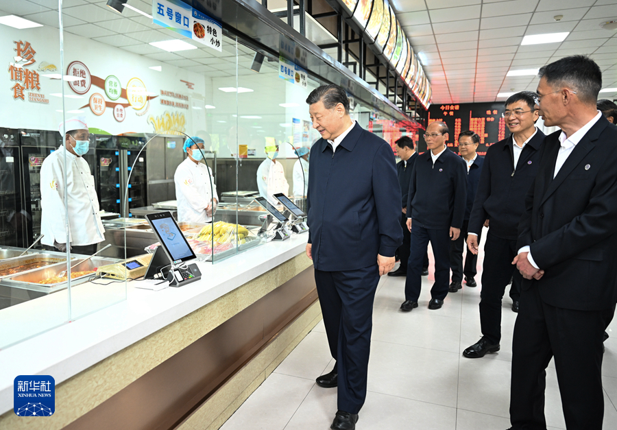 6月18日至19日,中共中央总书记、国家主席、中央军委主席习近平在青海考察。这是18日下午,习近平在果洛西宁民族中学食堂察看学生就餐条件。