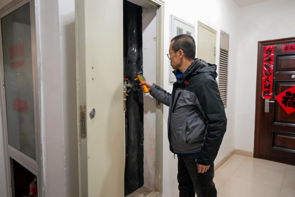 呼和浩特市城发供热有限责任公司工作人员在丰瑞公园小区对供热设施测温。新华社记者哈丽娜 摄