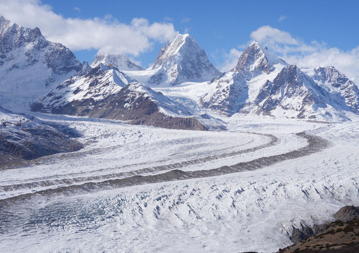 来古冰川位于西藏自治区昌都市八宿县然乌镇境内,因其外观形态独特壮美,成为川藏公路游客的打卡胜地(2024年12月18日摄)。新华社记者 丁汀 摄