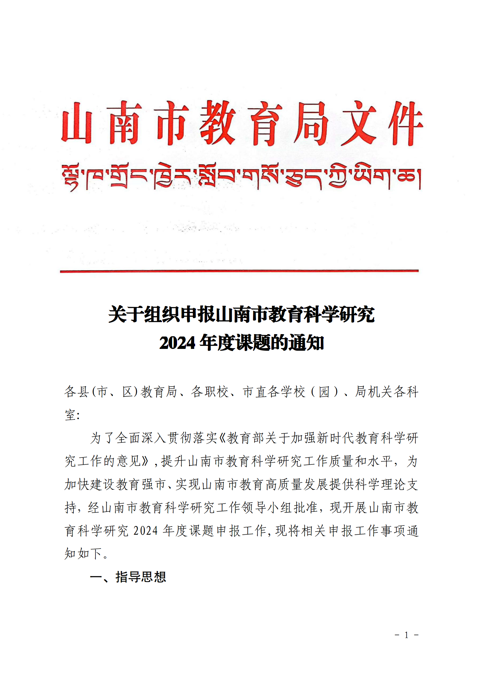 山南市教育科学研究2024年度课题申报通知