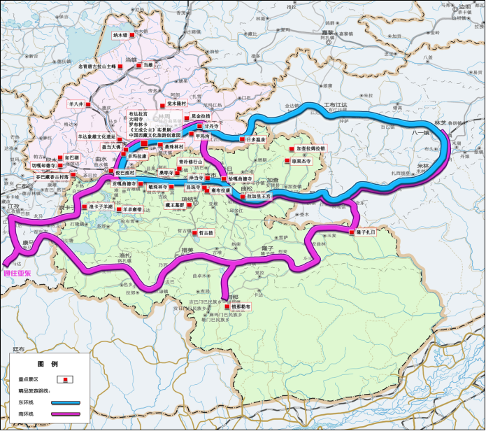 图3 拉萨、山南两市重点景区和精品旅游线路图