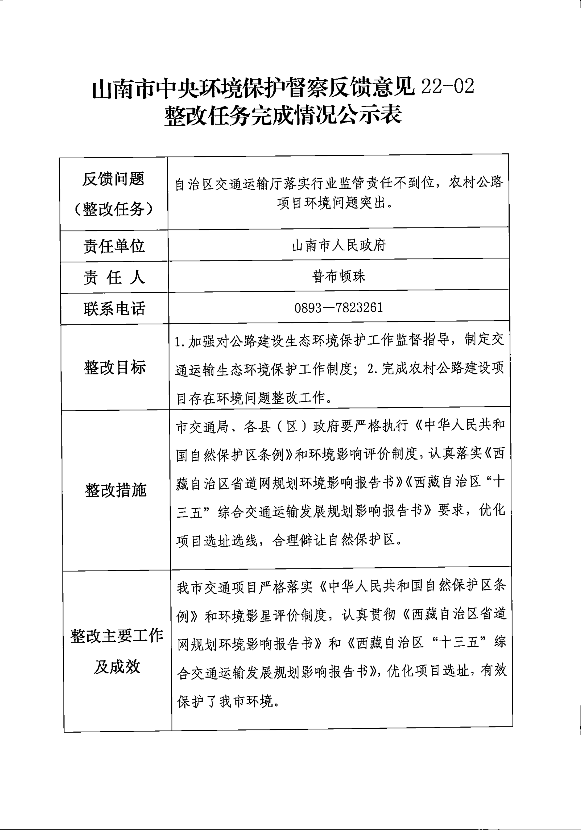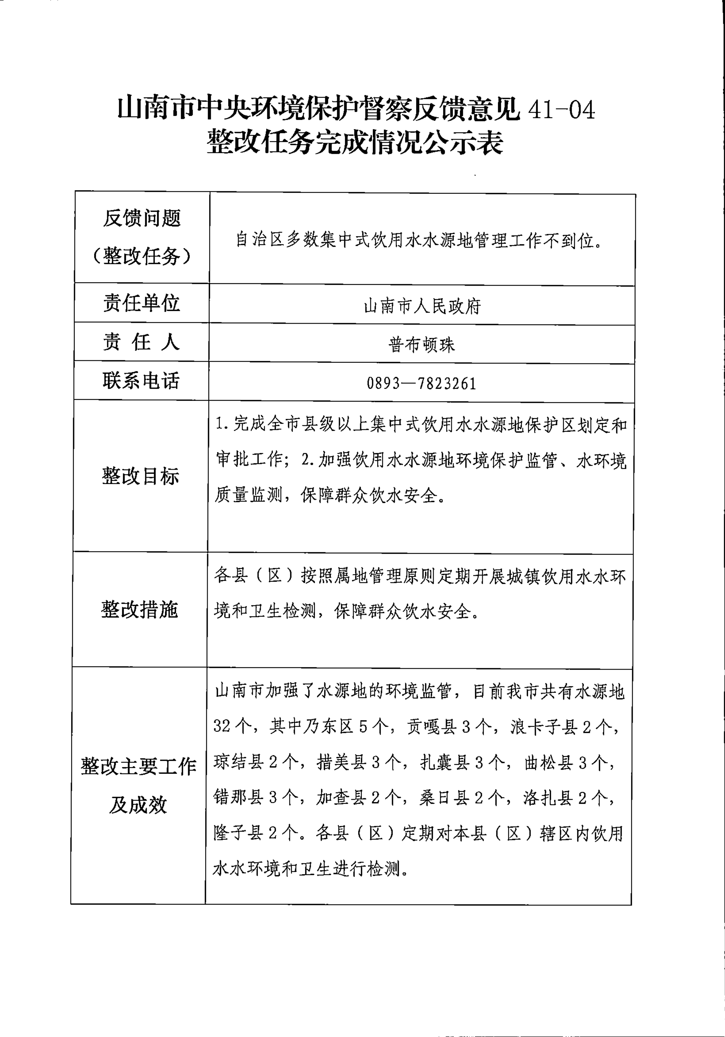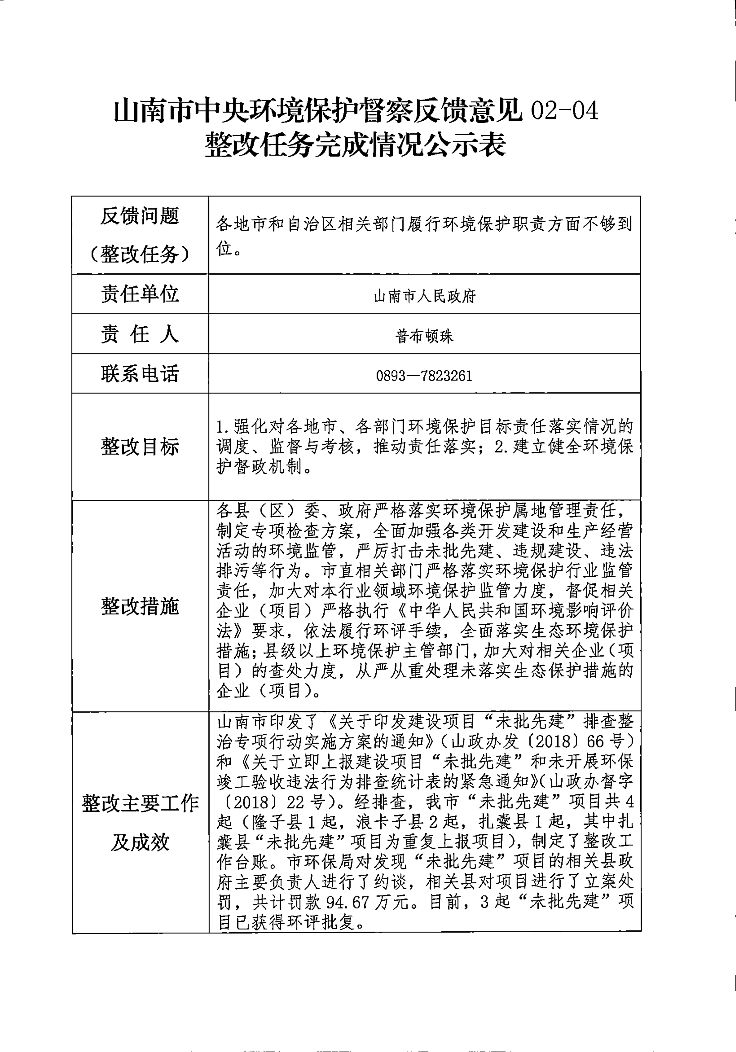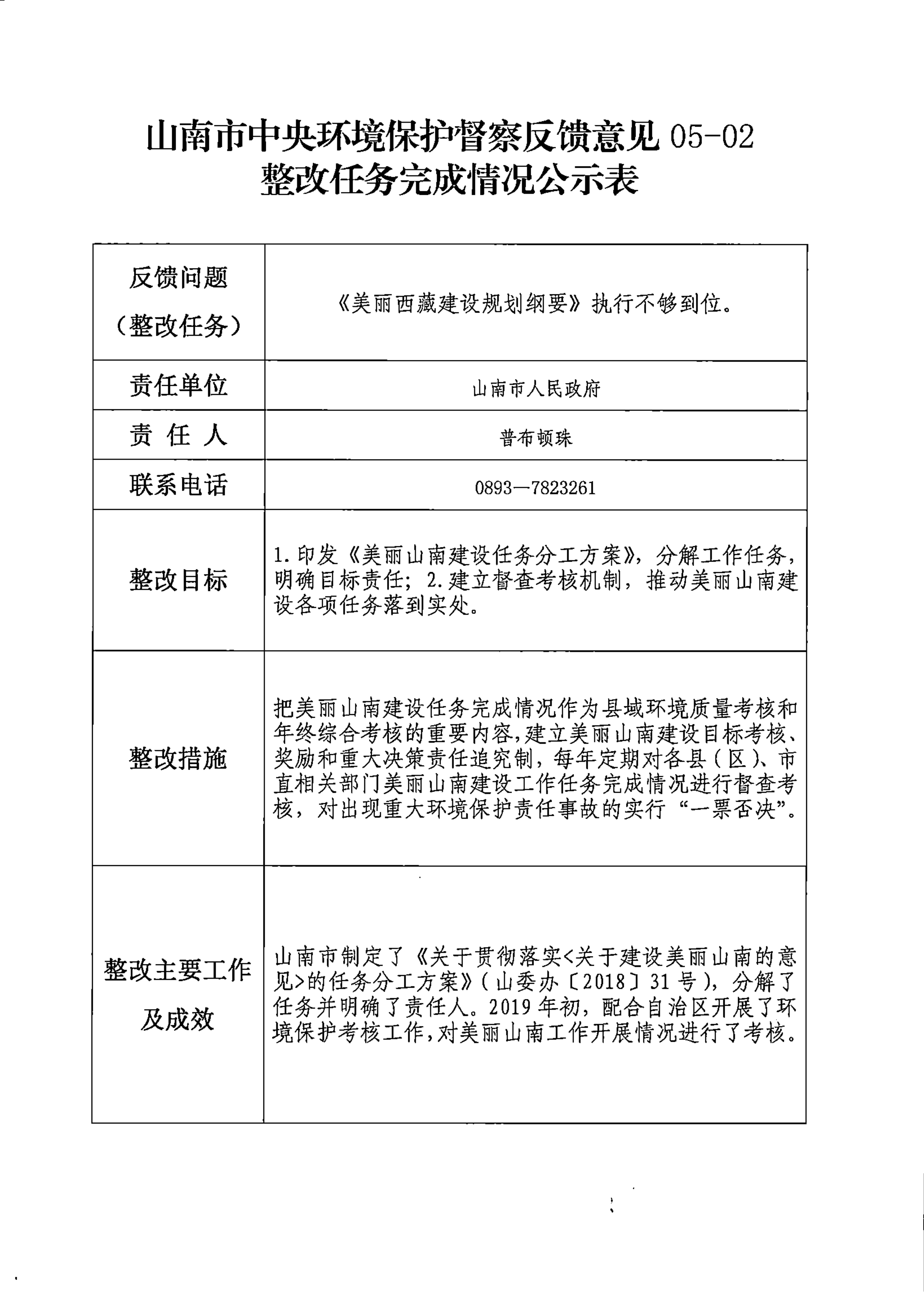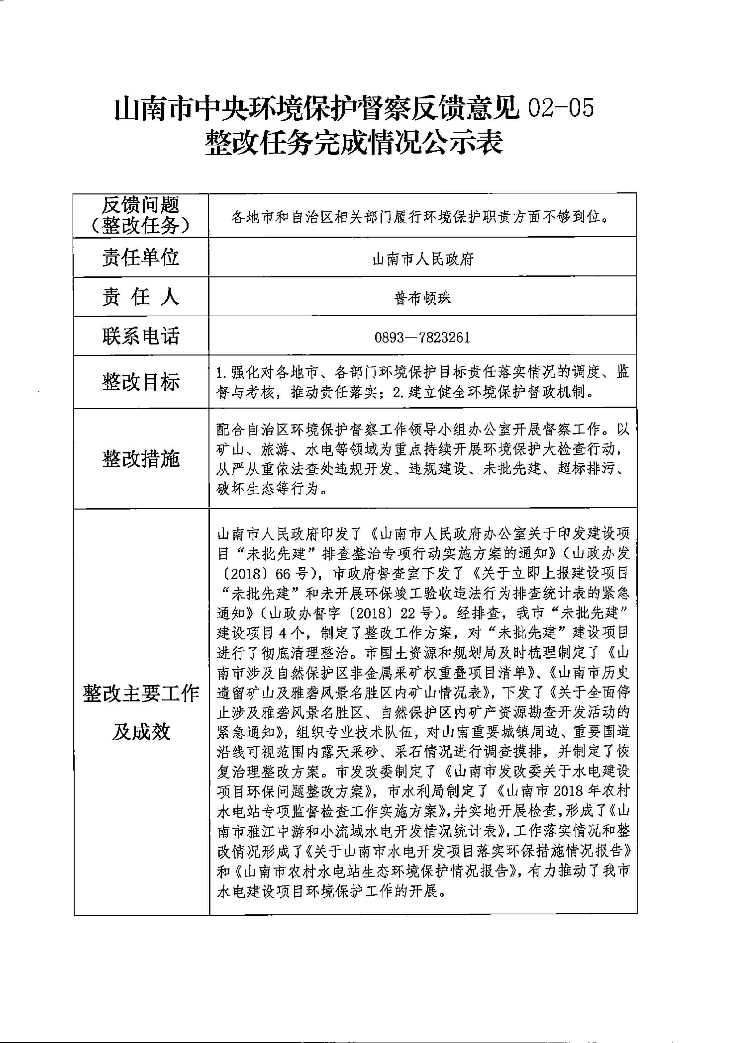 山南市中央环境保护督察反馈意见36项整改任务完成情况公示表