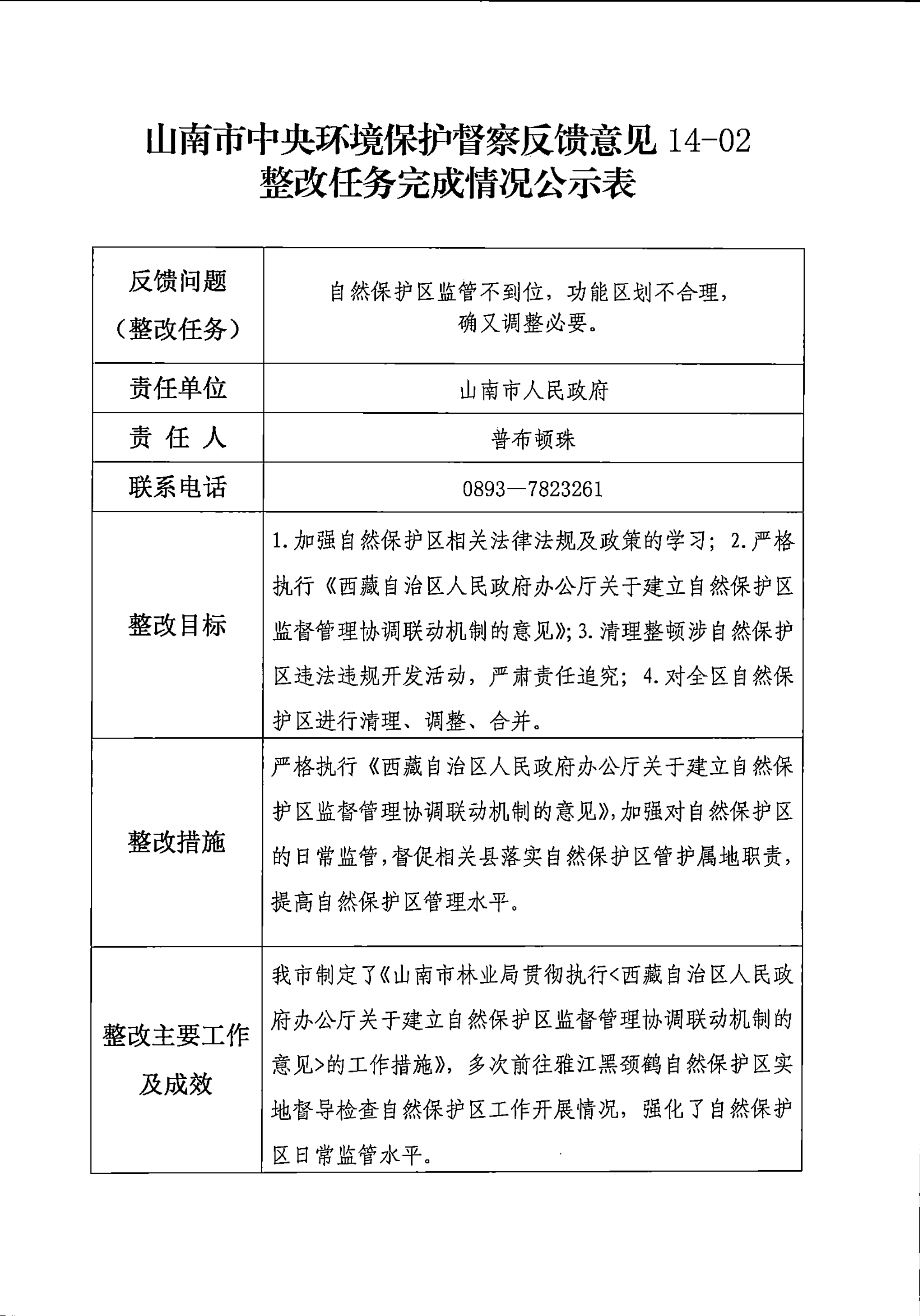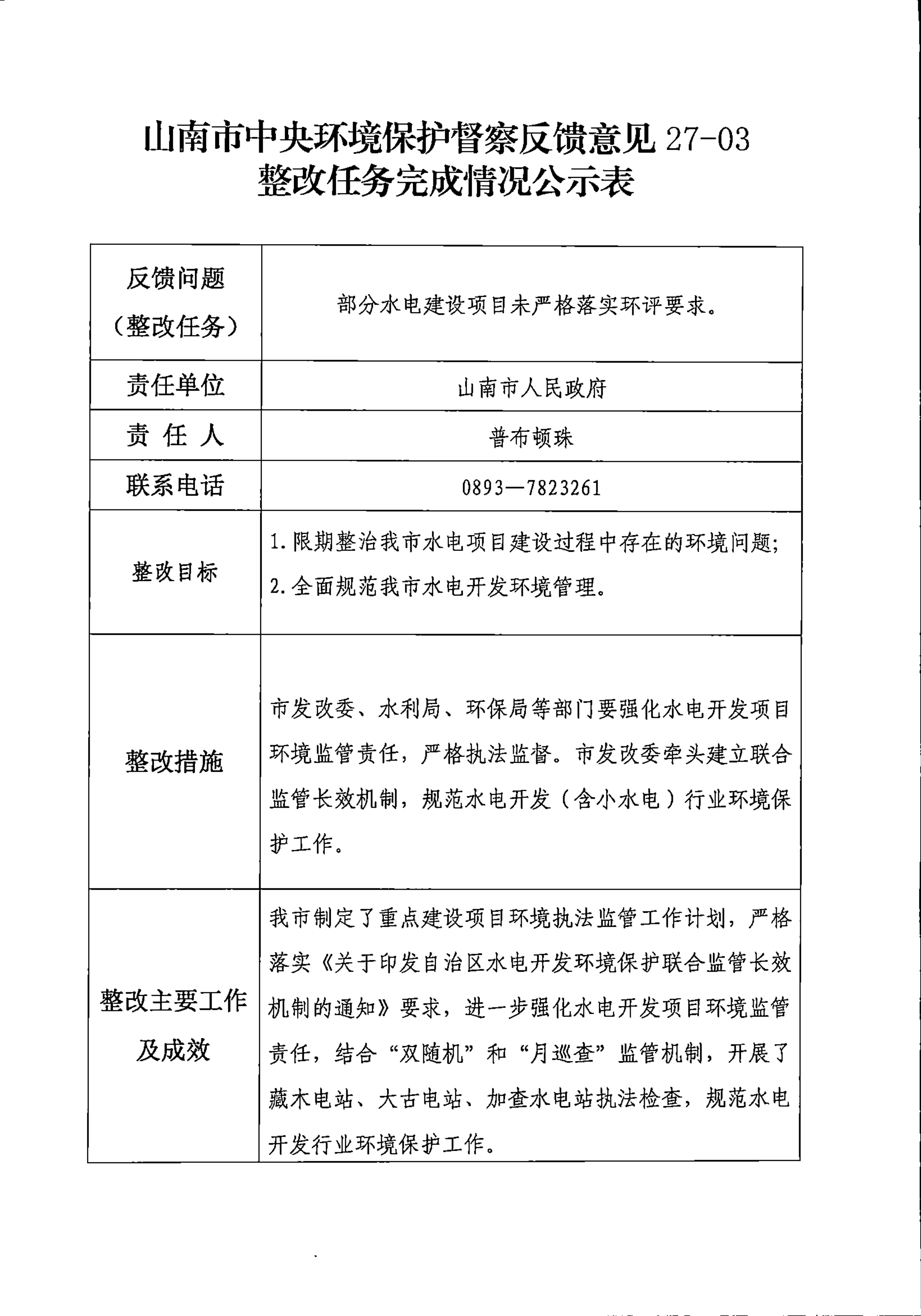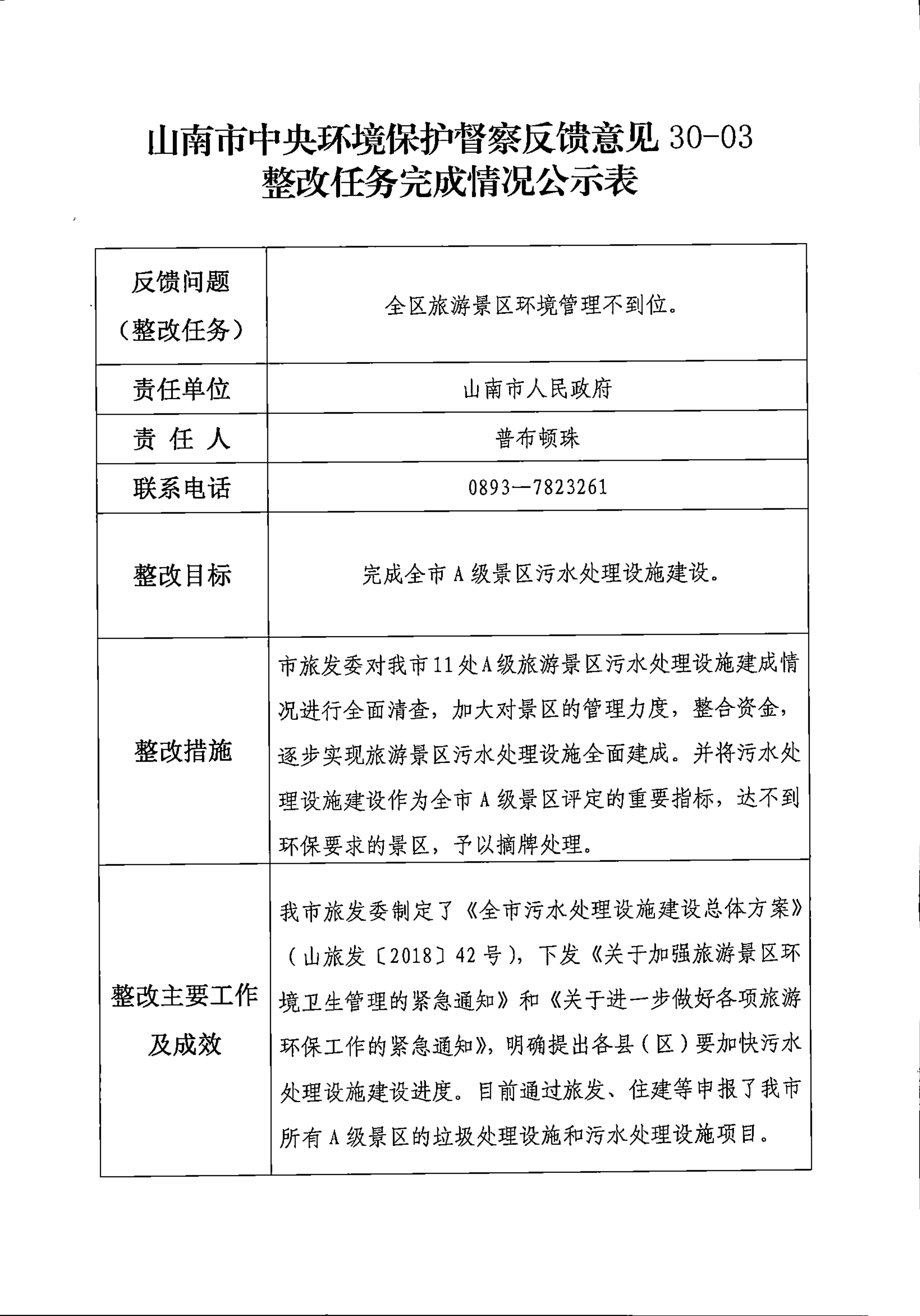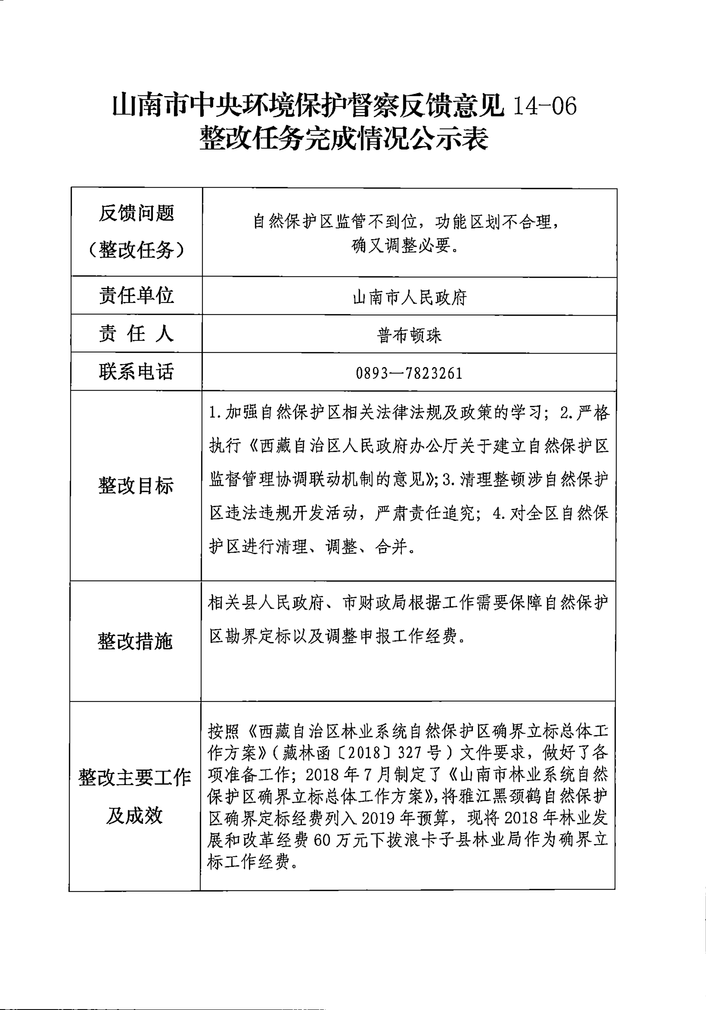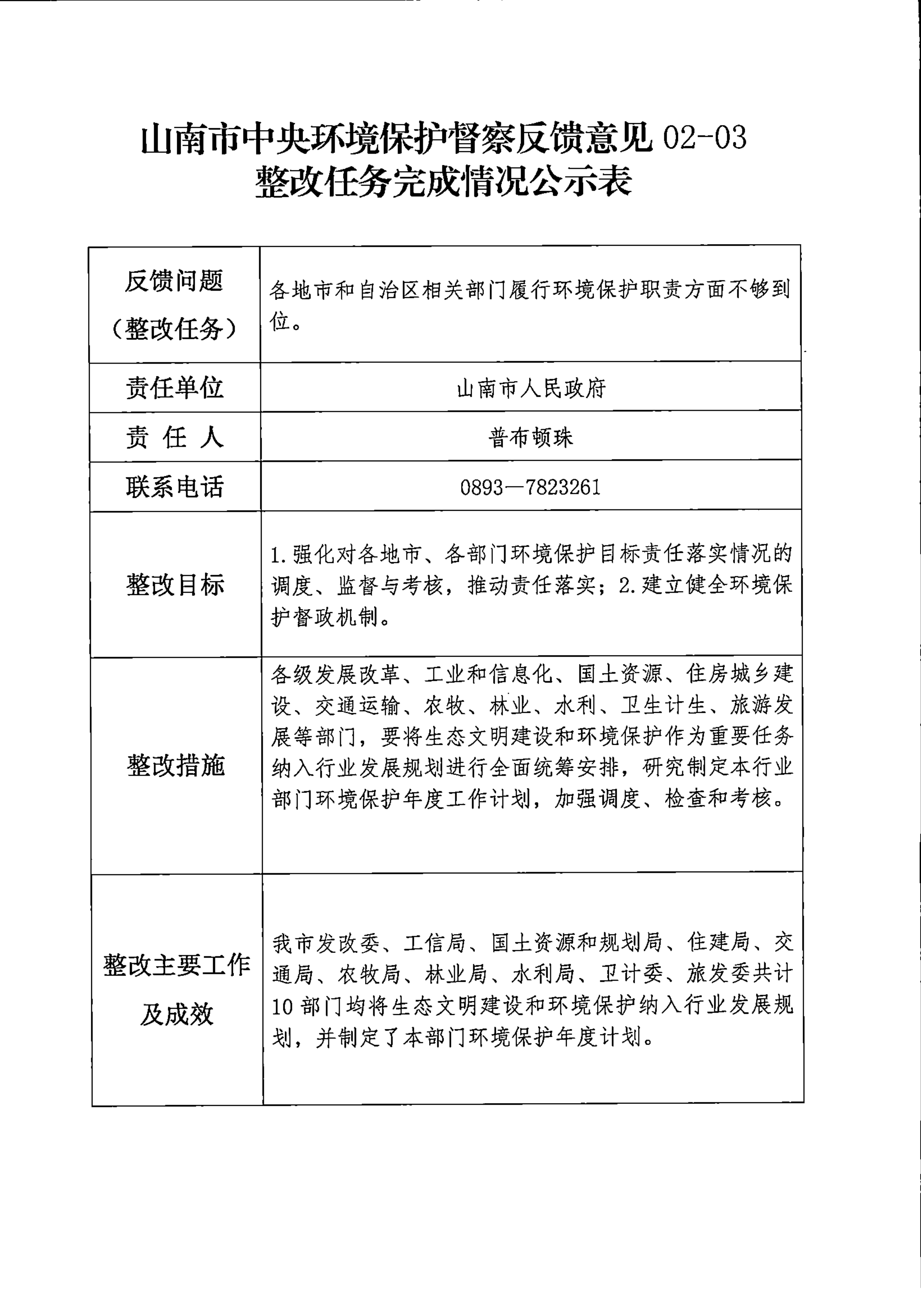 山南市中央环境保护督察反馈意见36项整改任务完成情况公示表