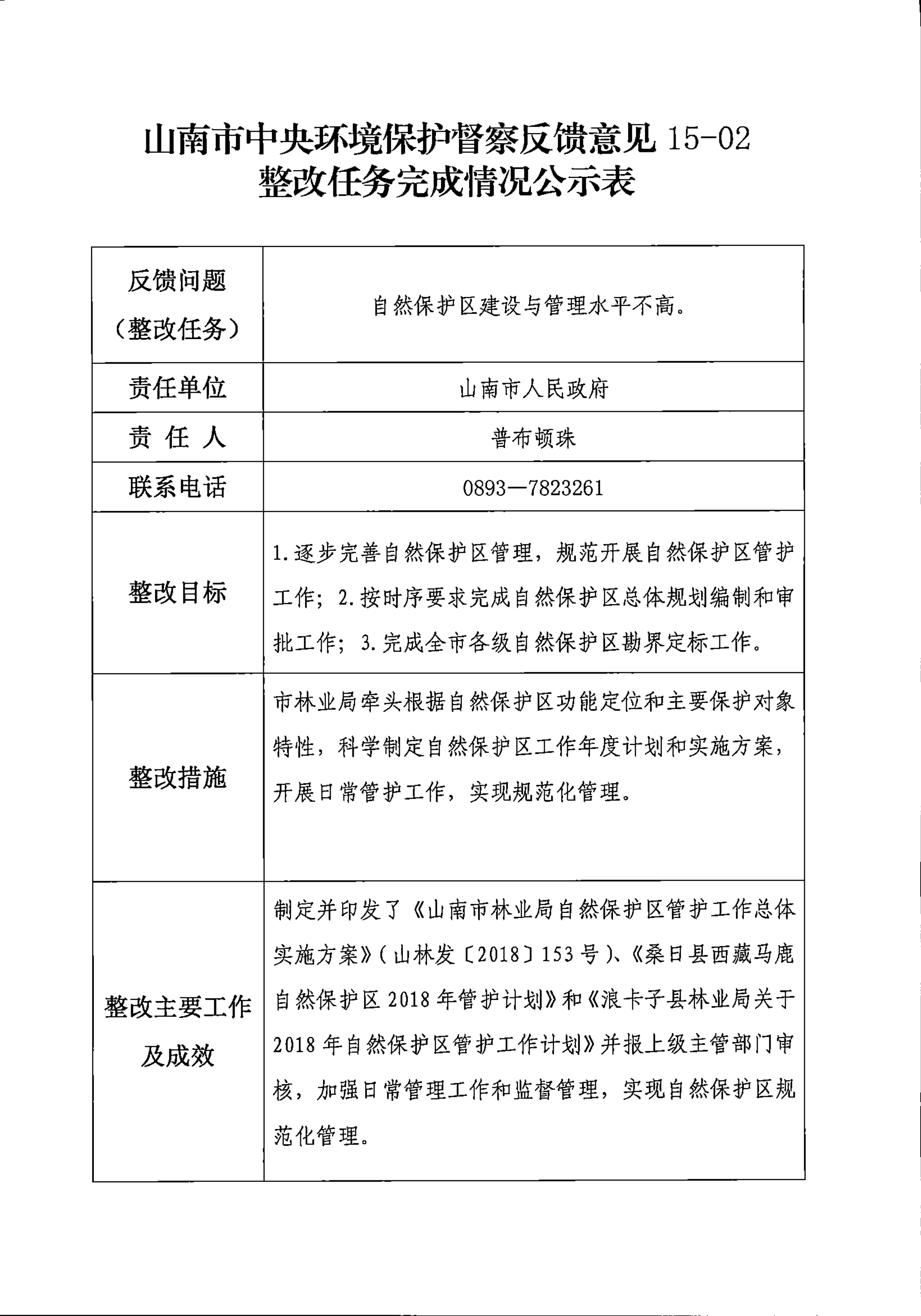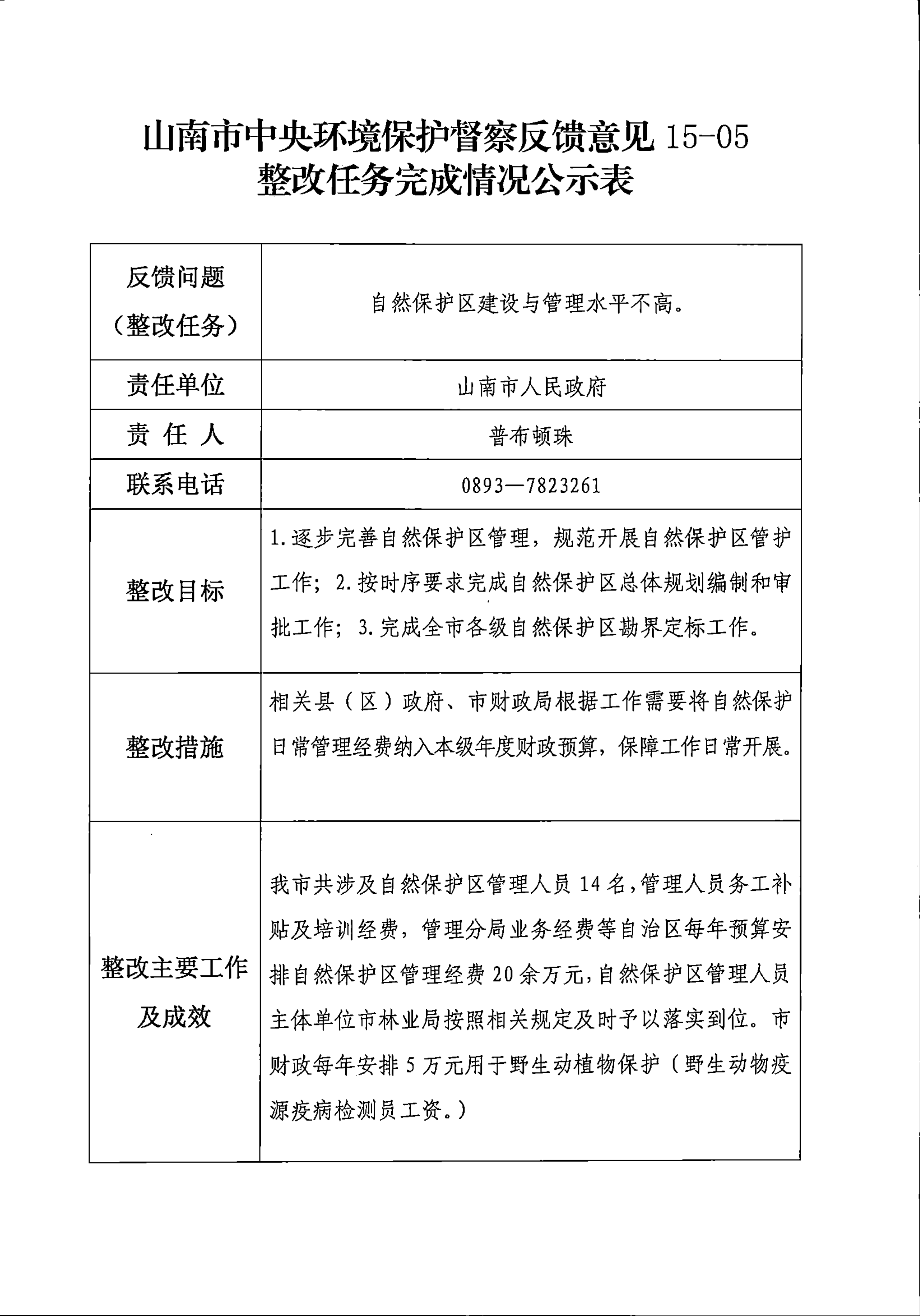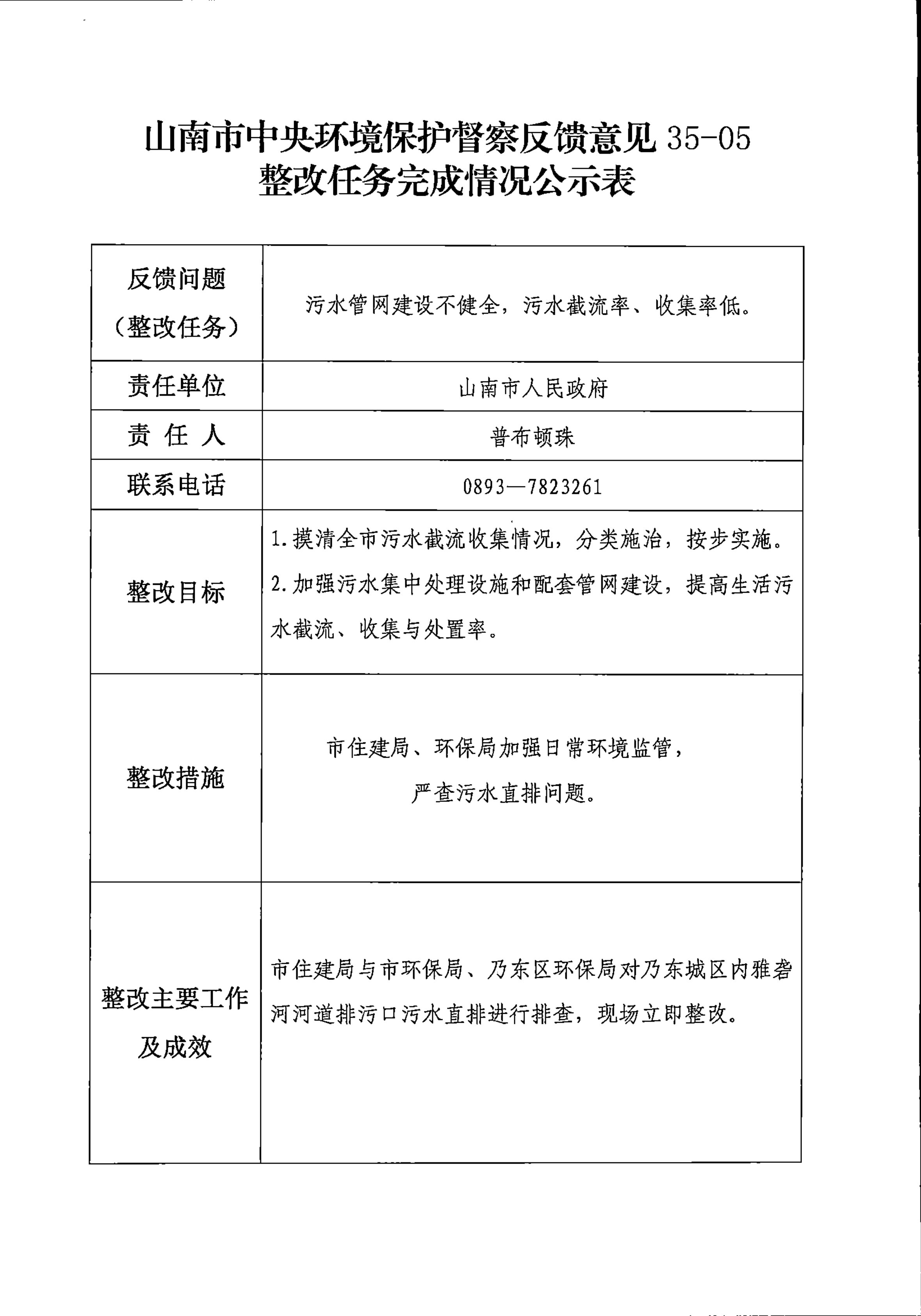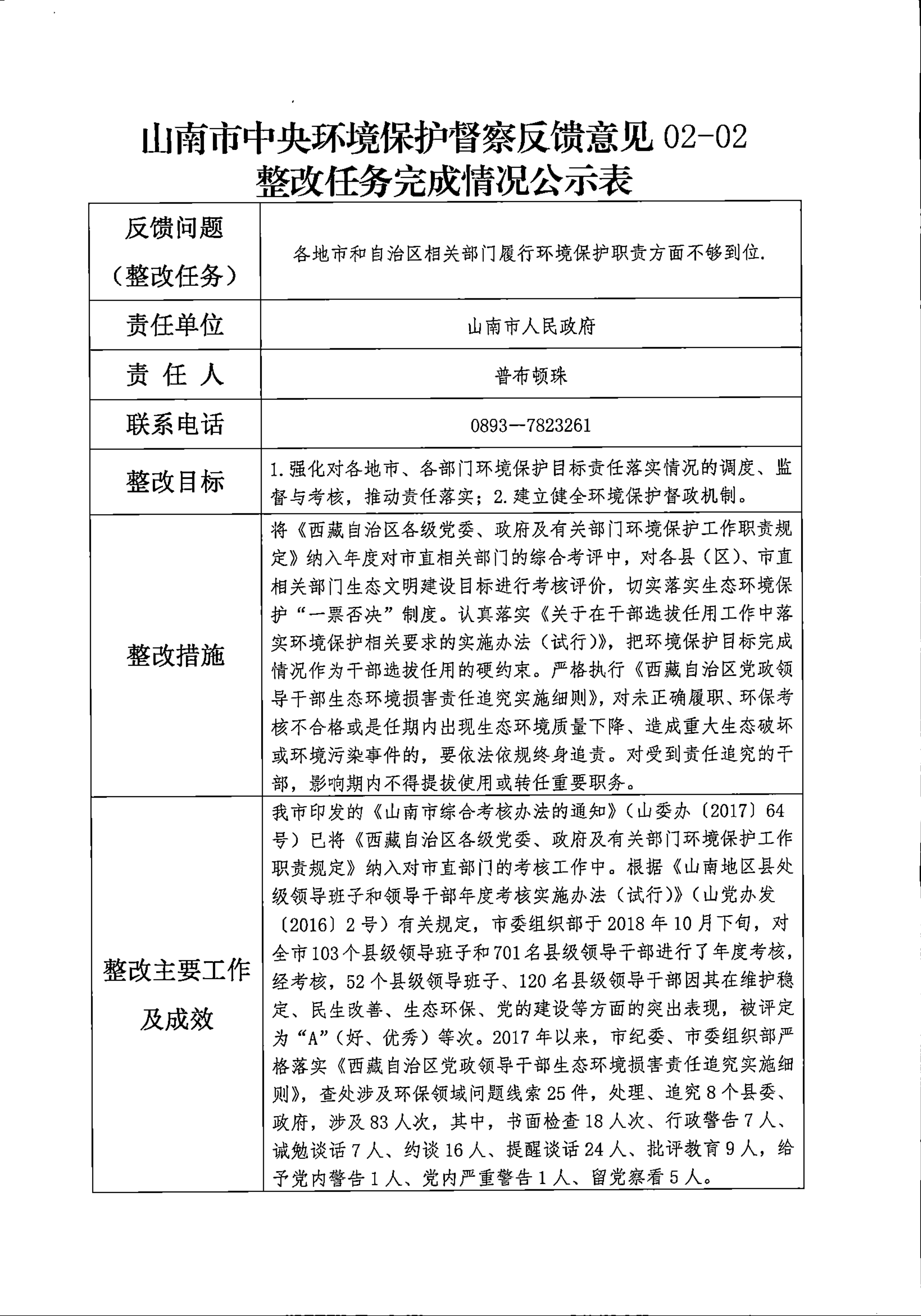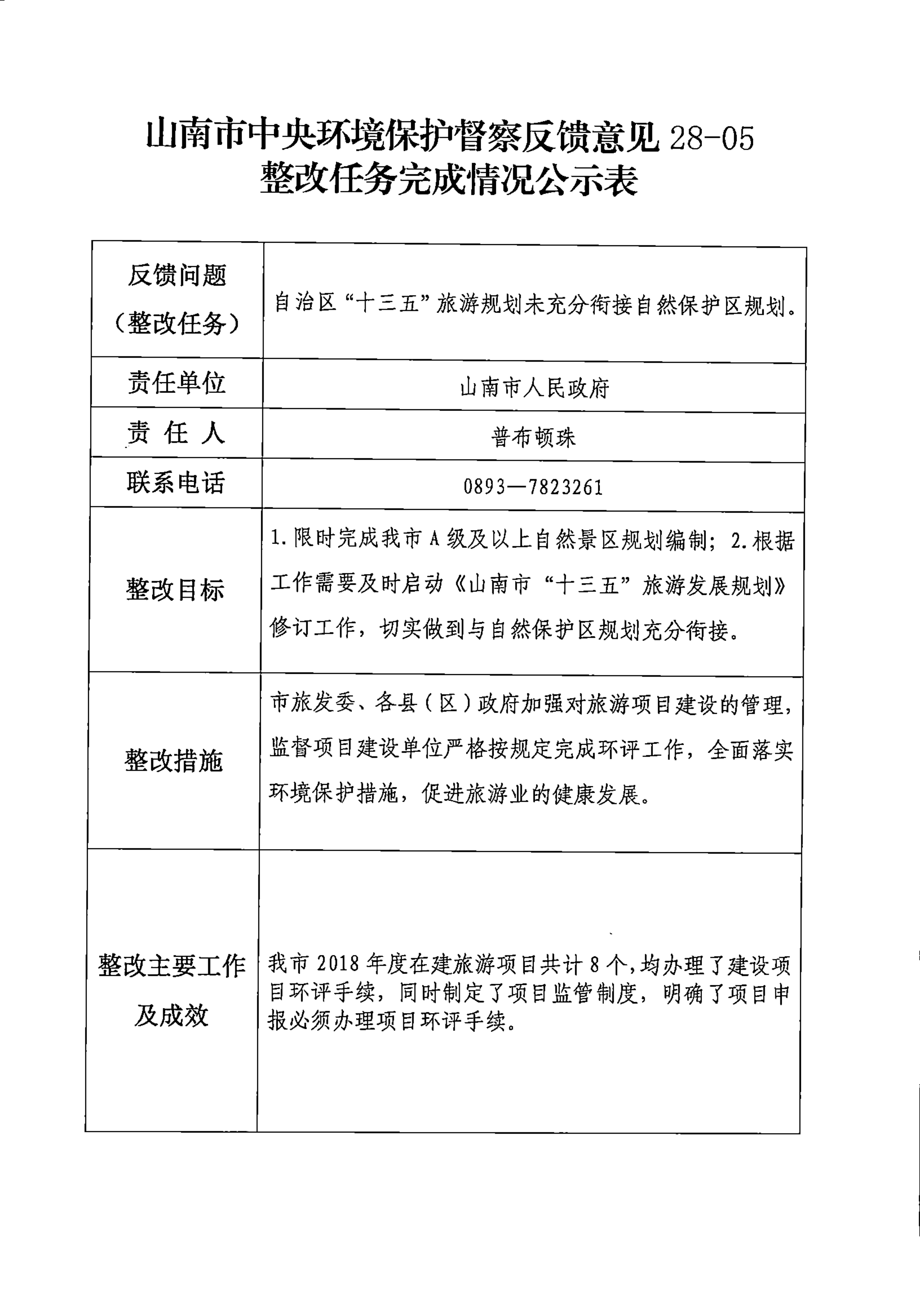 山南市中央环境保护督察反馈意见36项整改任务完成情况公示表