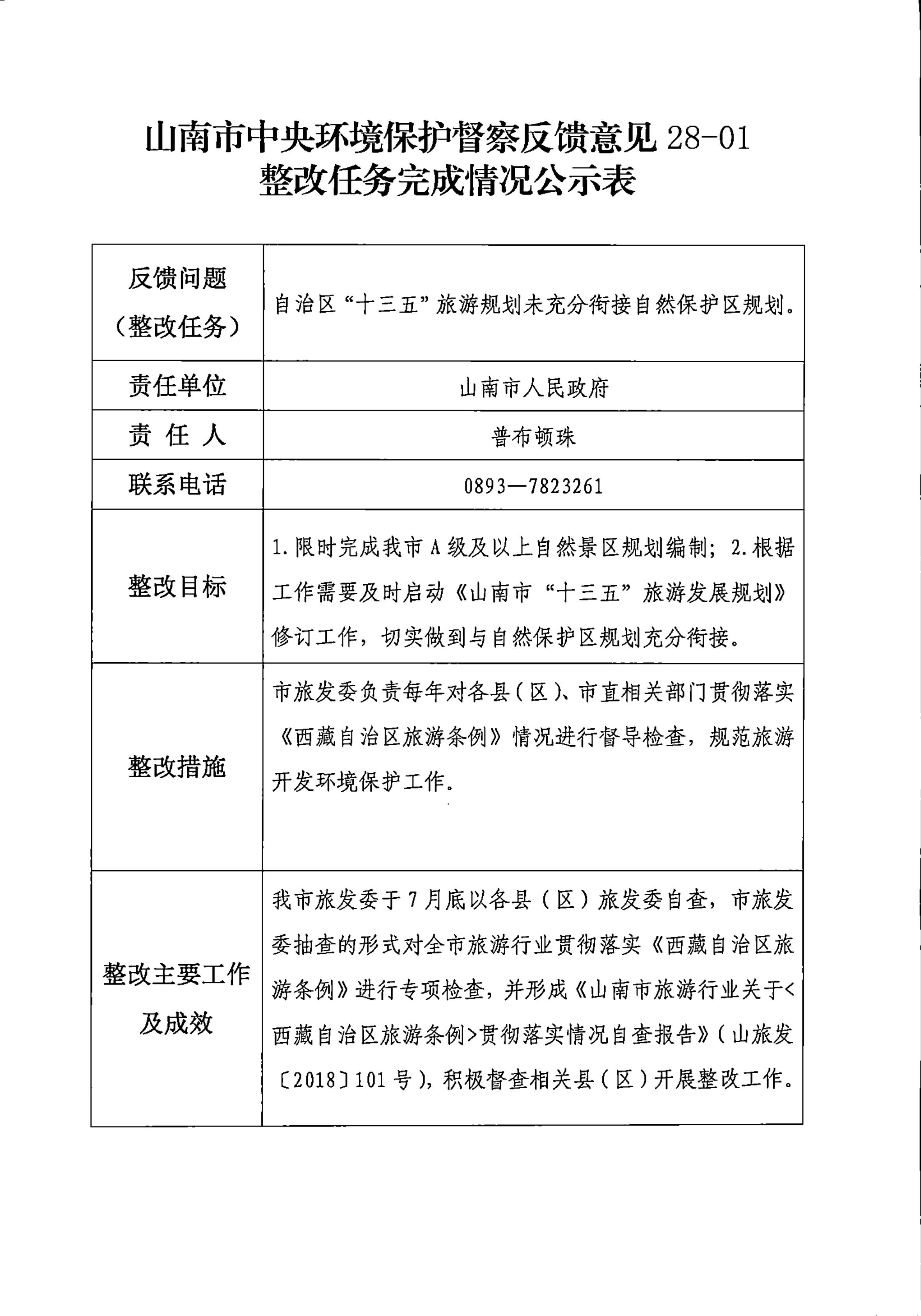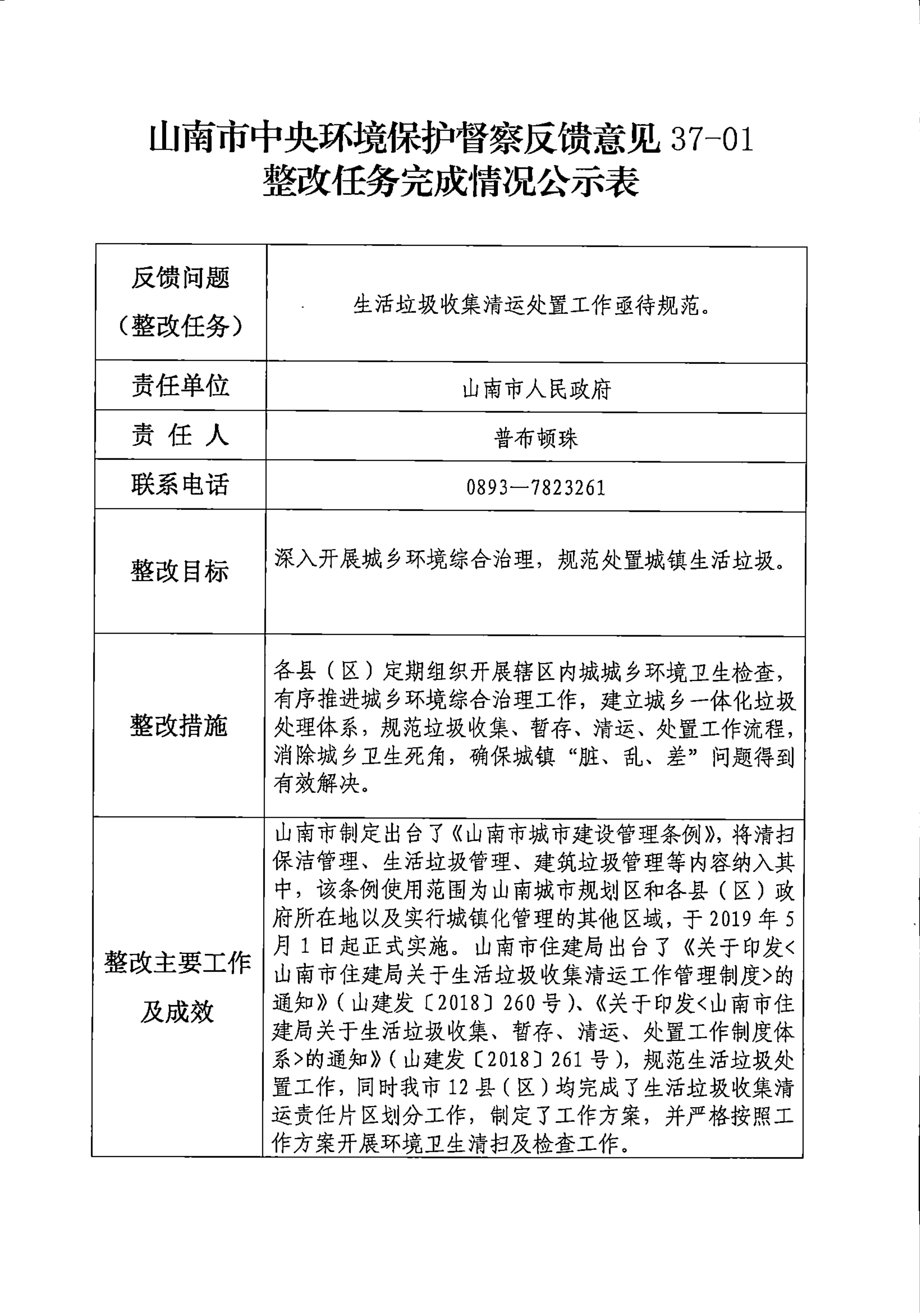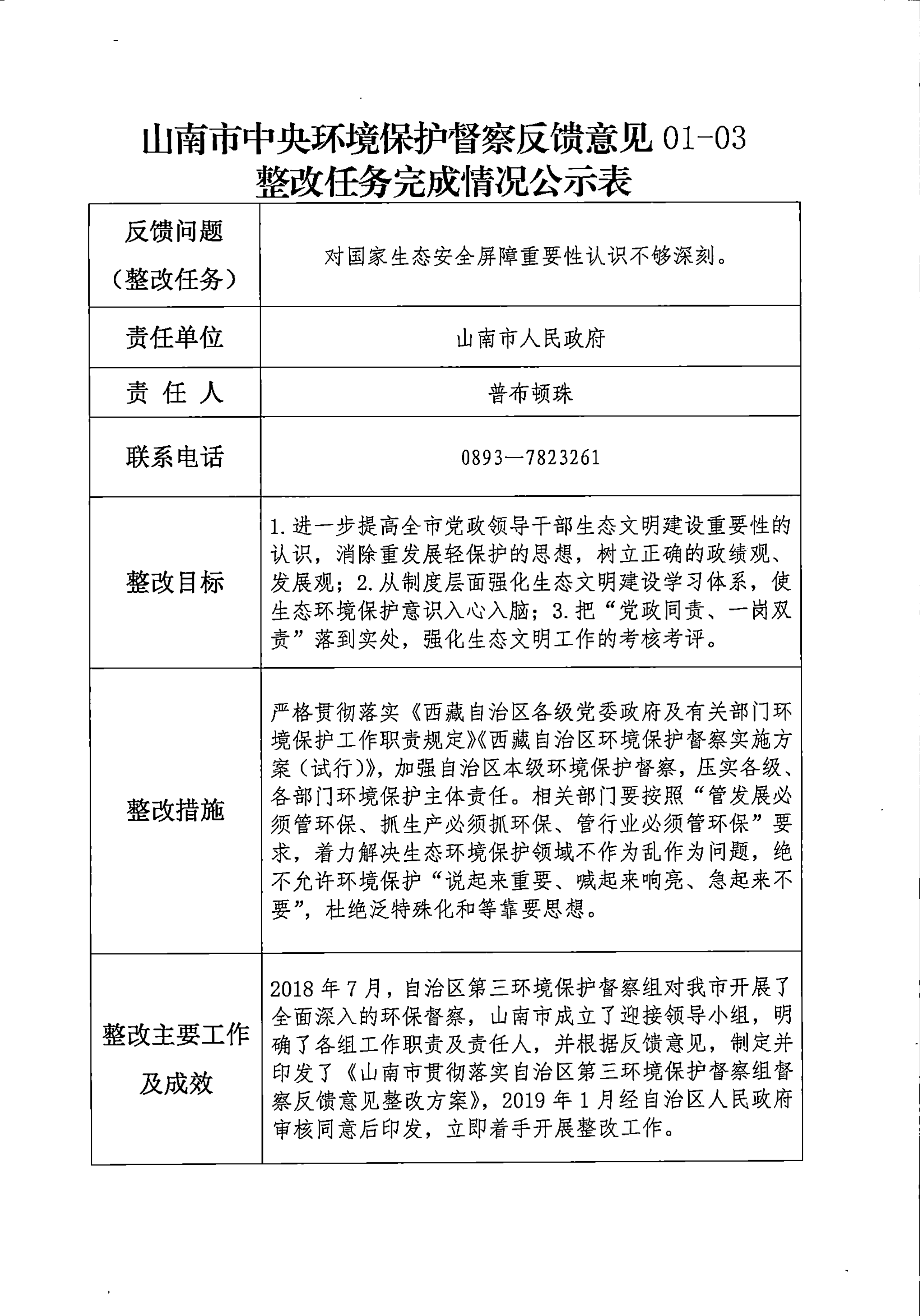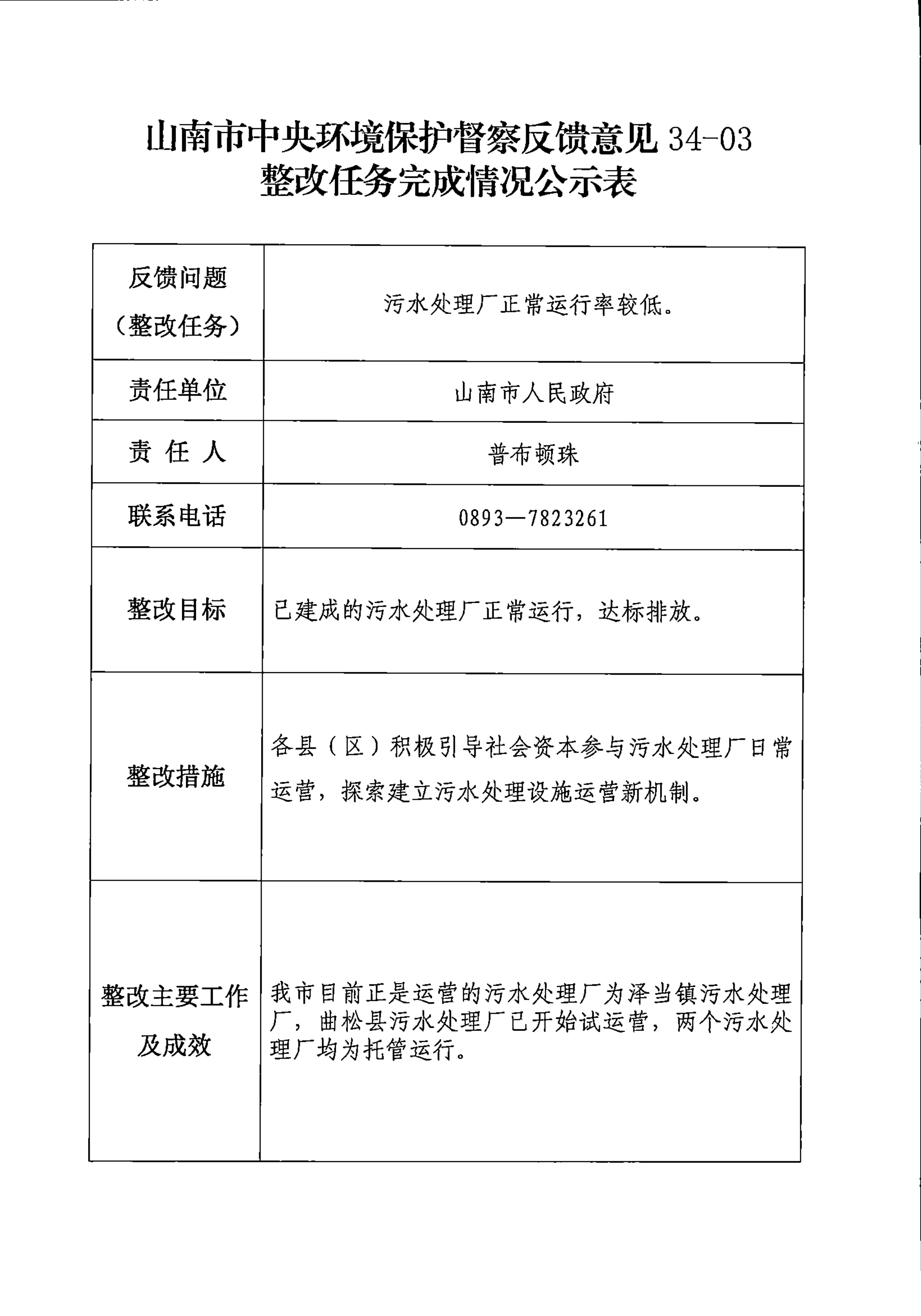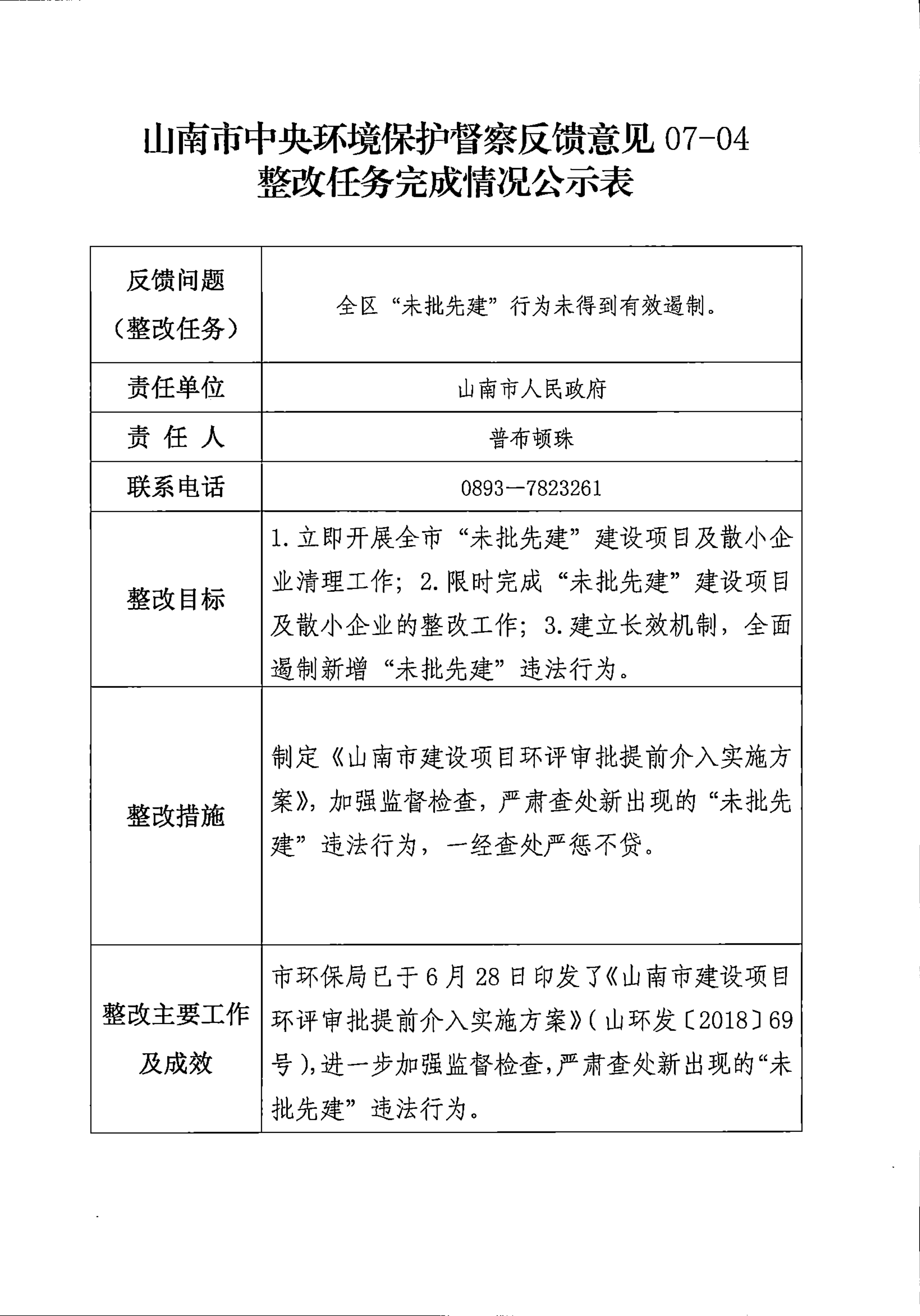 山南市中央环境保护督察反馈意见36项整改任务完成情况公示表