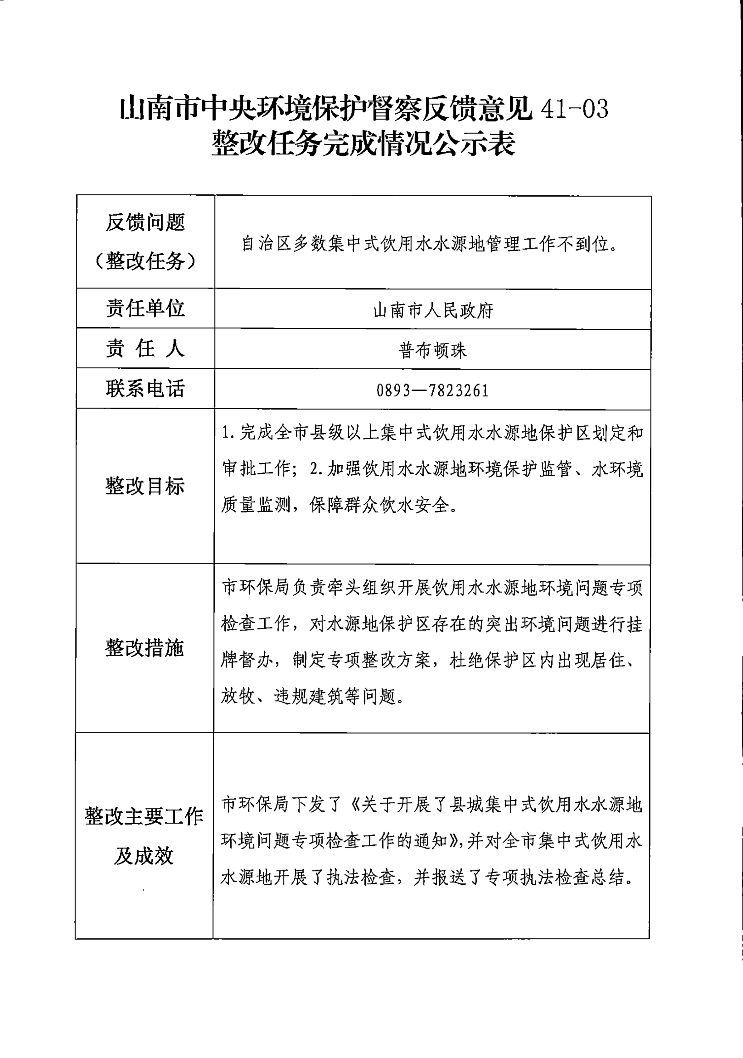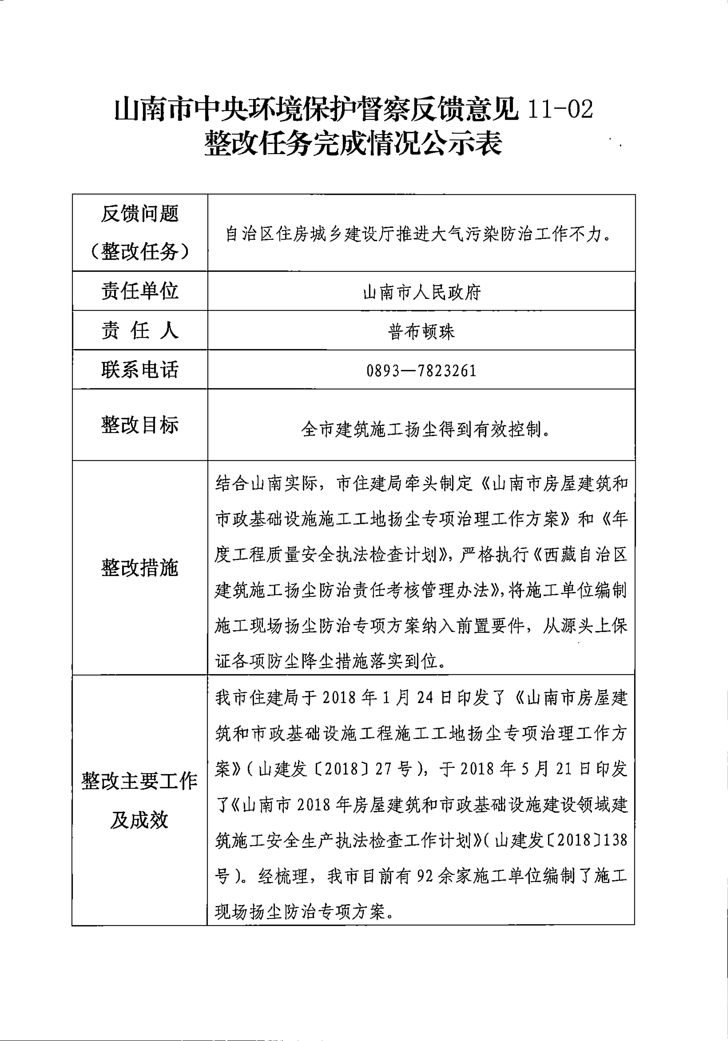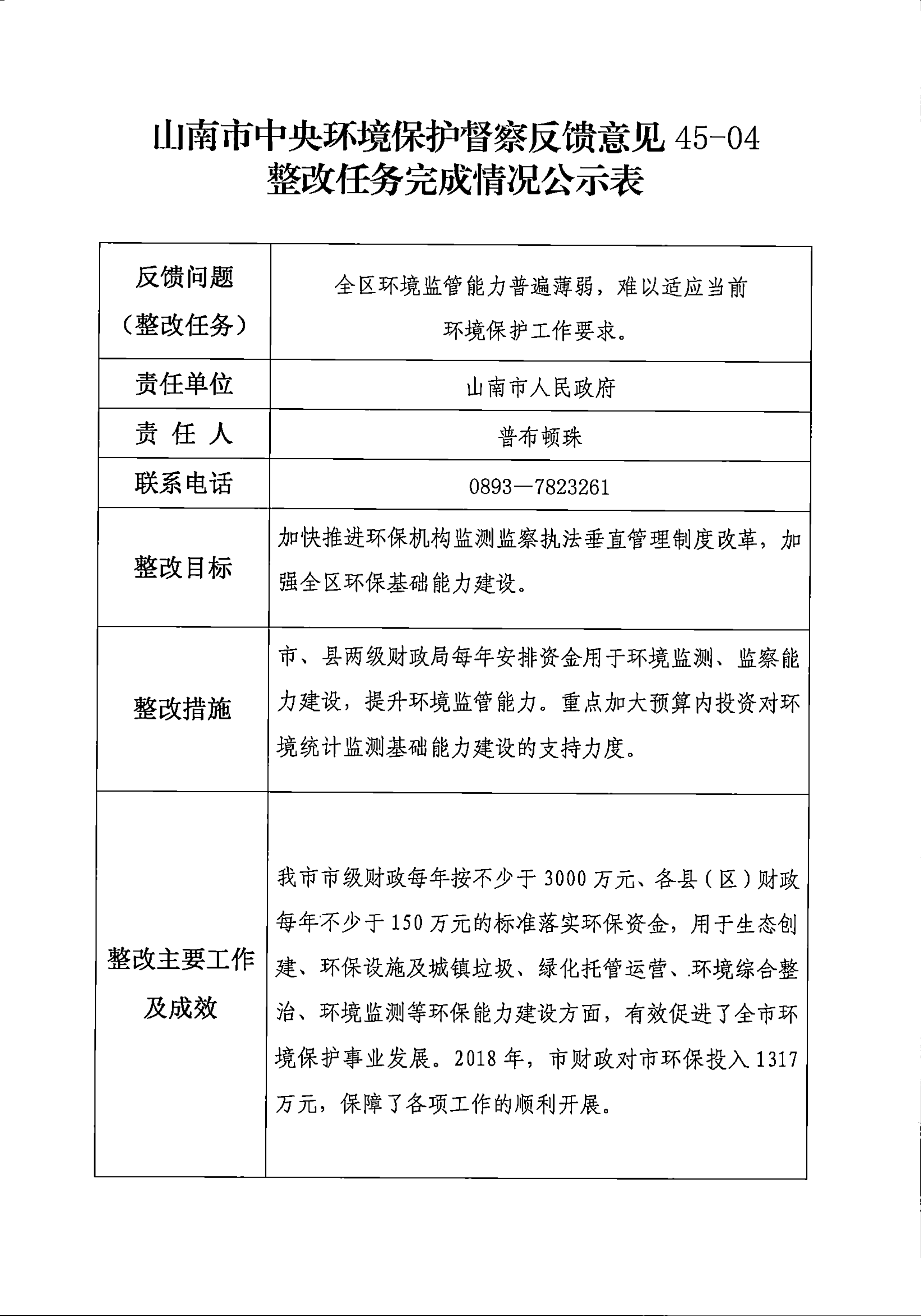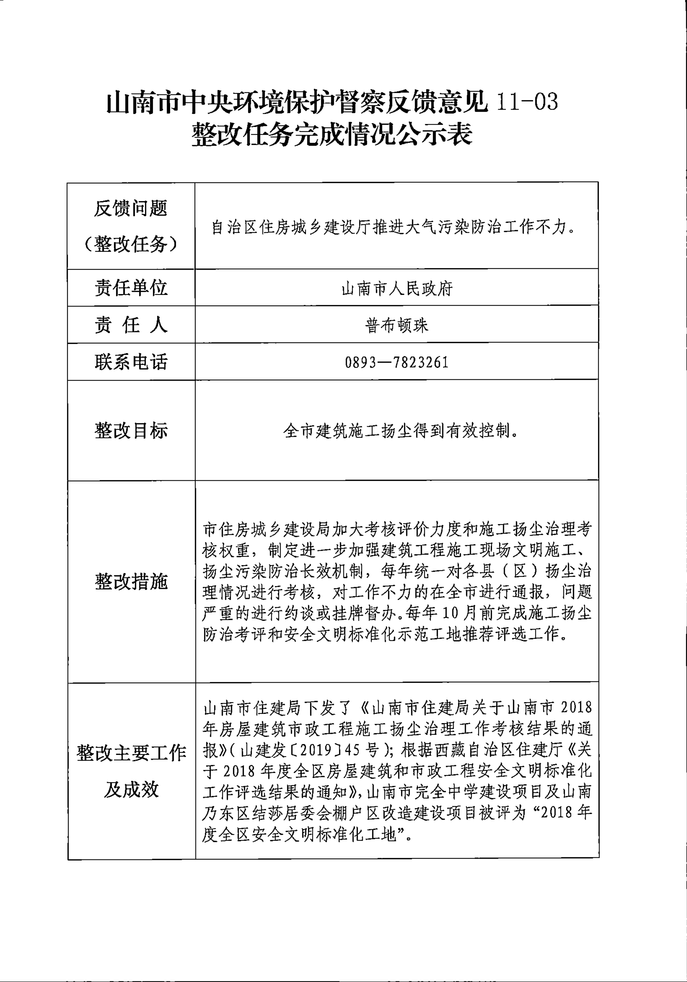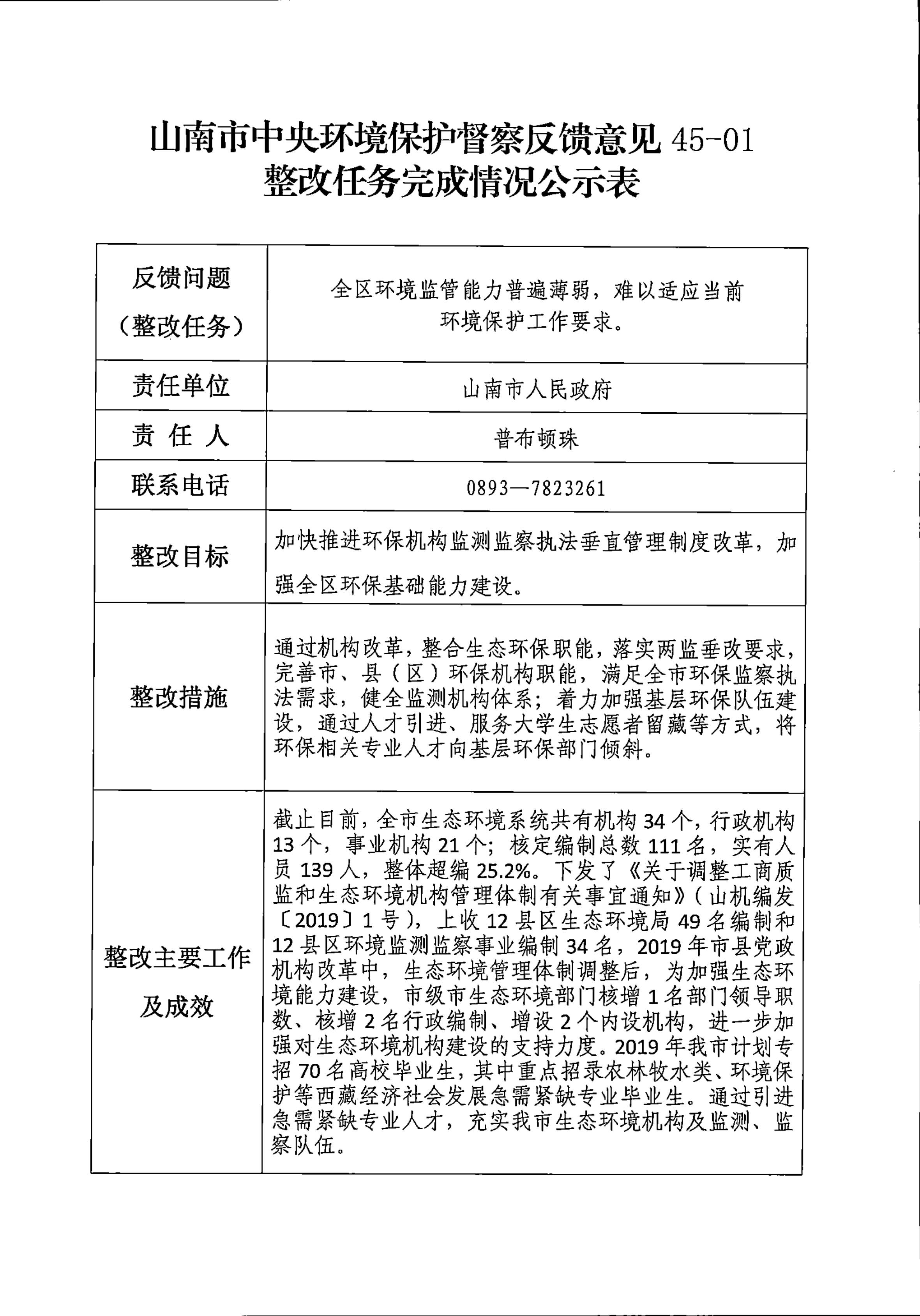 山南市中央环境保护督察反馈意见36项整改任务完成情况公示表