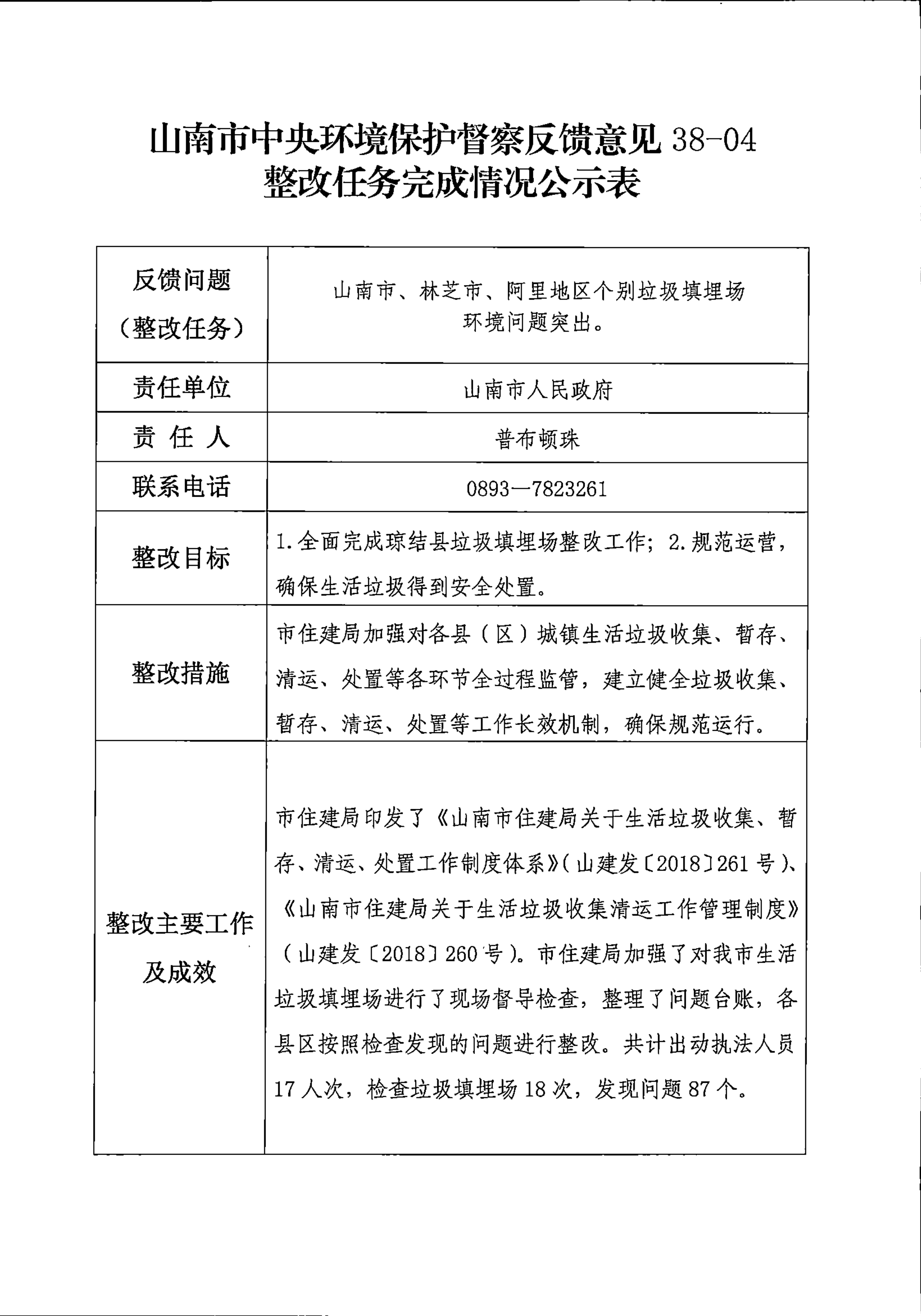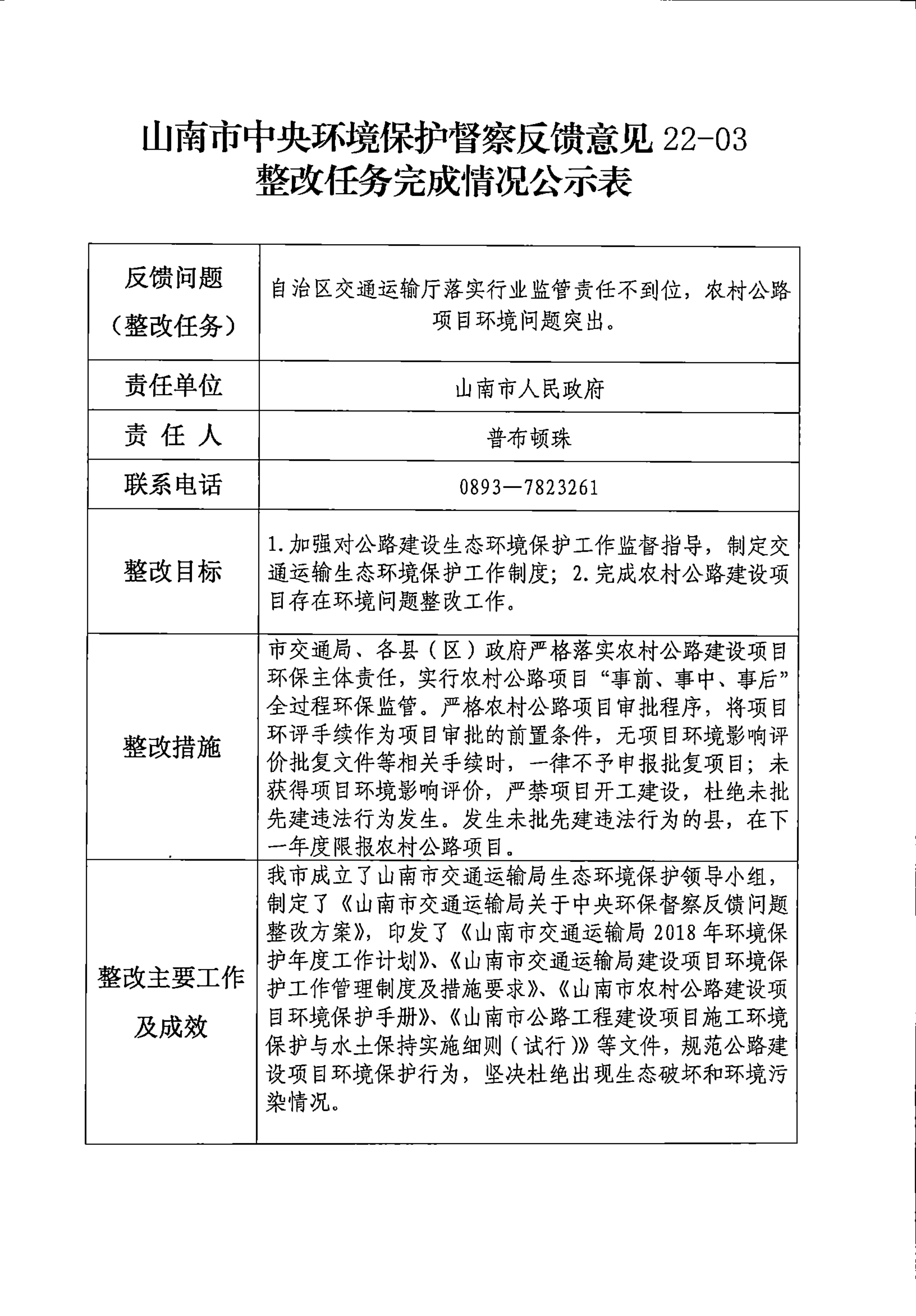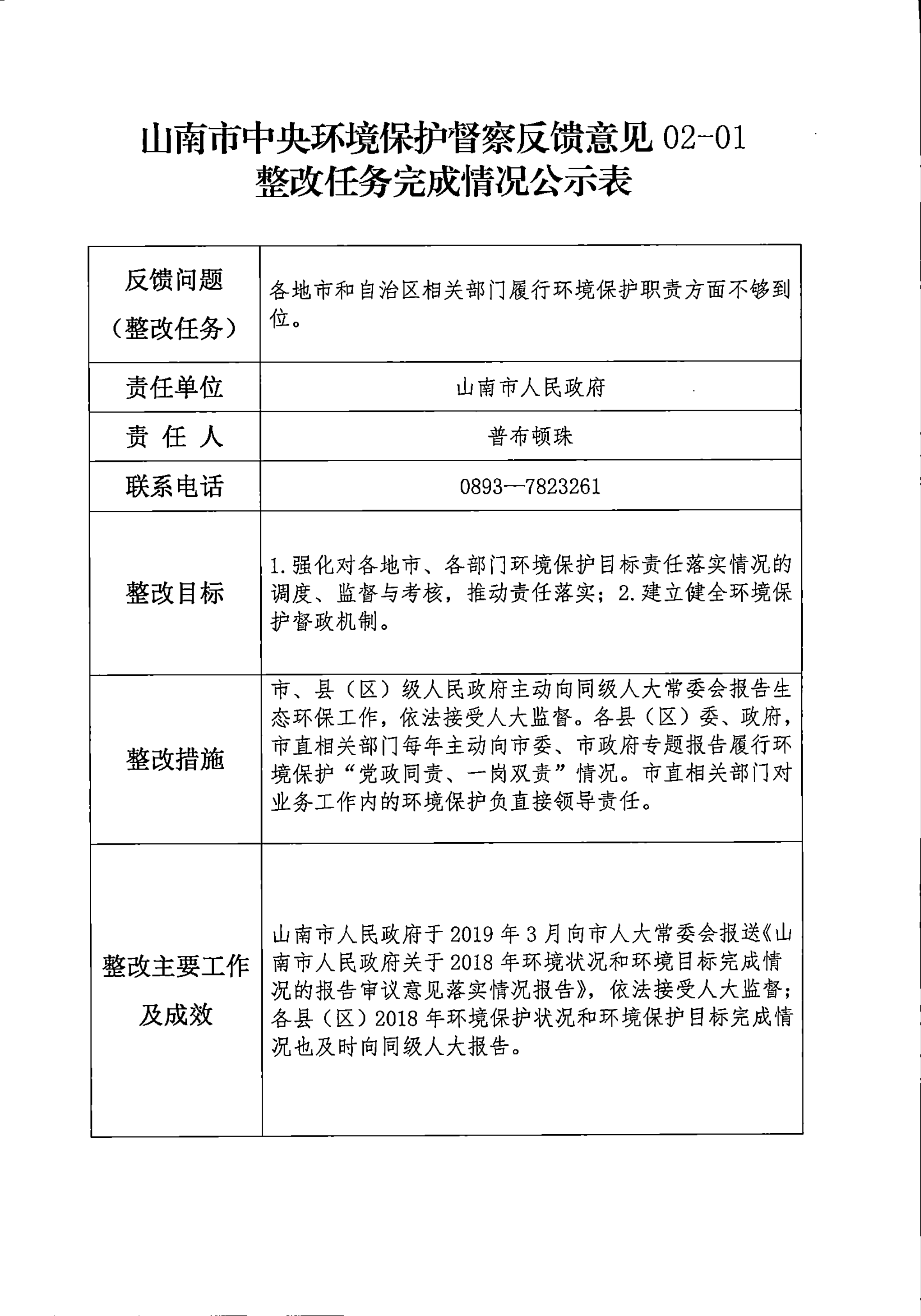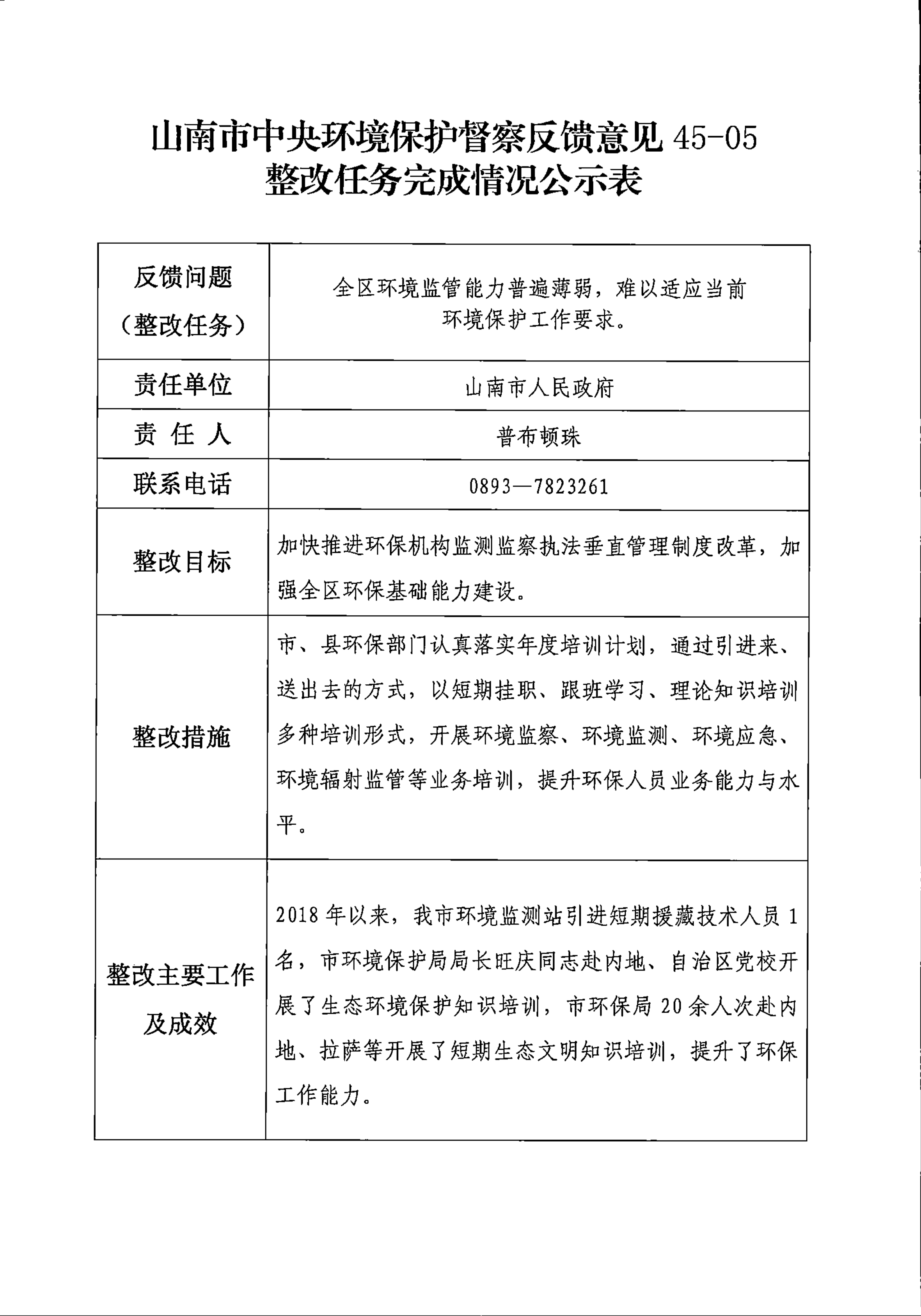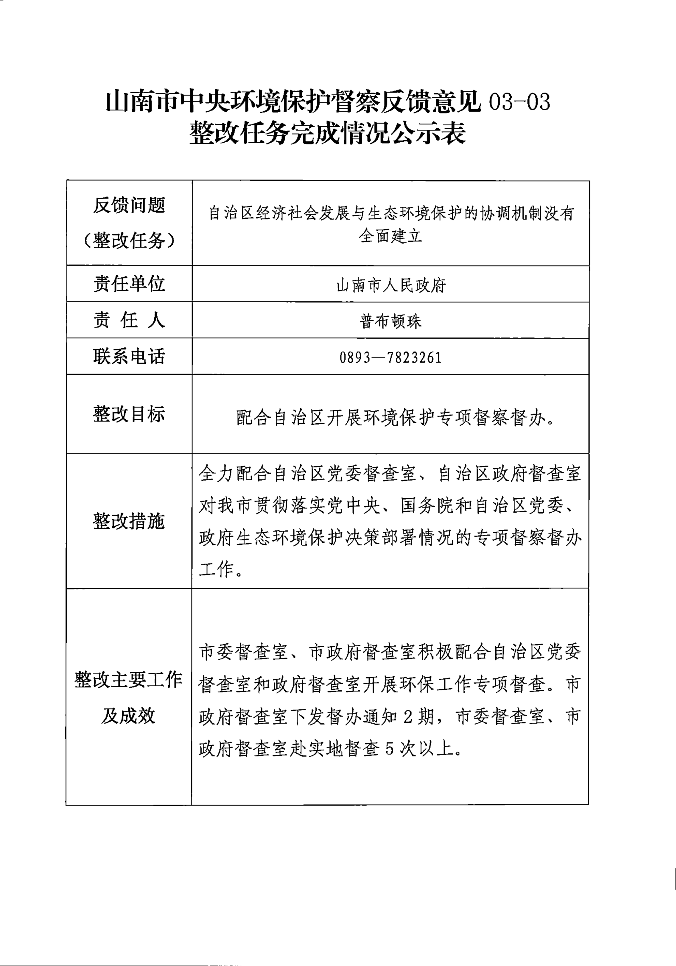 山南市中央环境保护督察反馈意见36项整改任务完成情况公示表