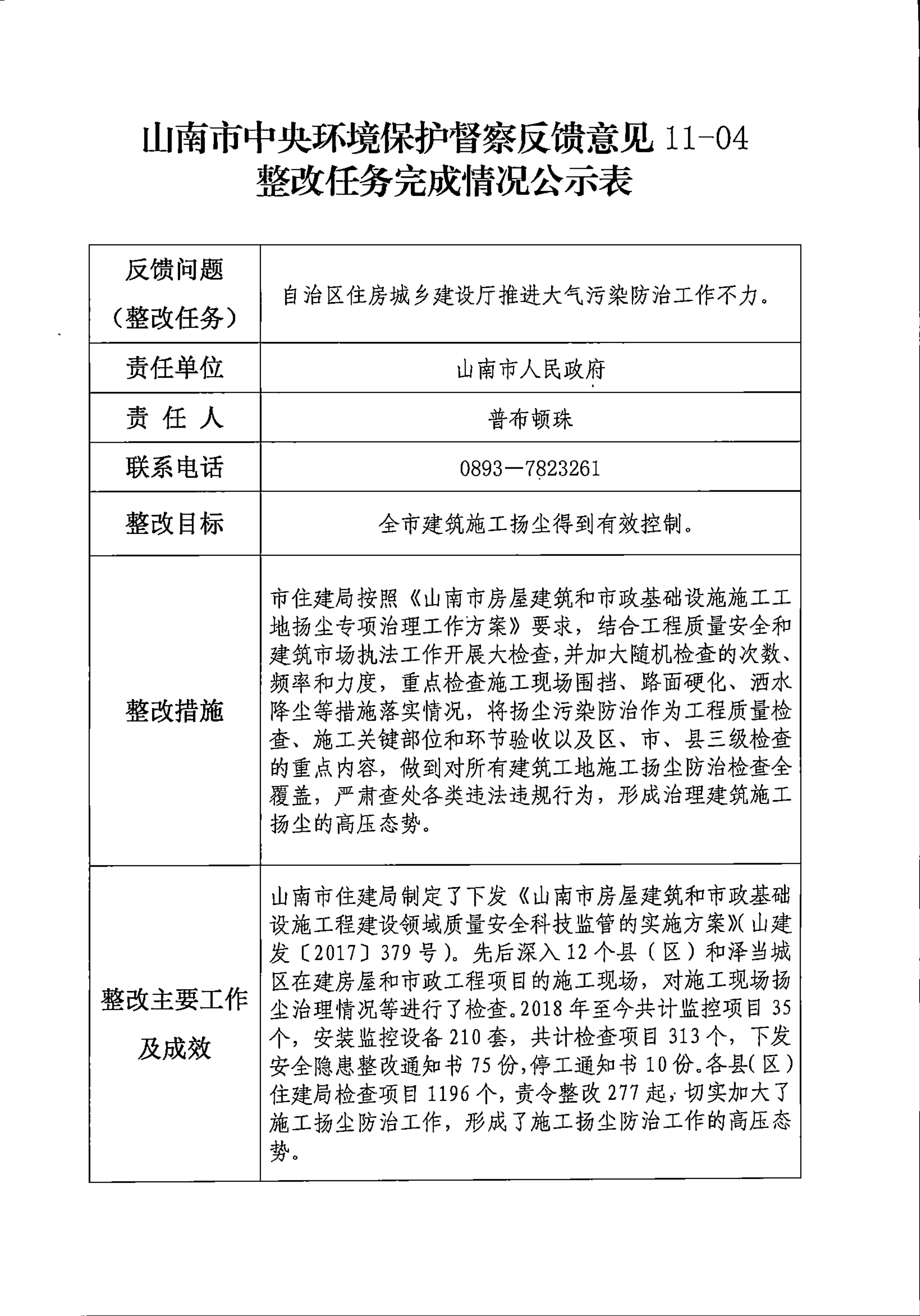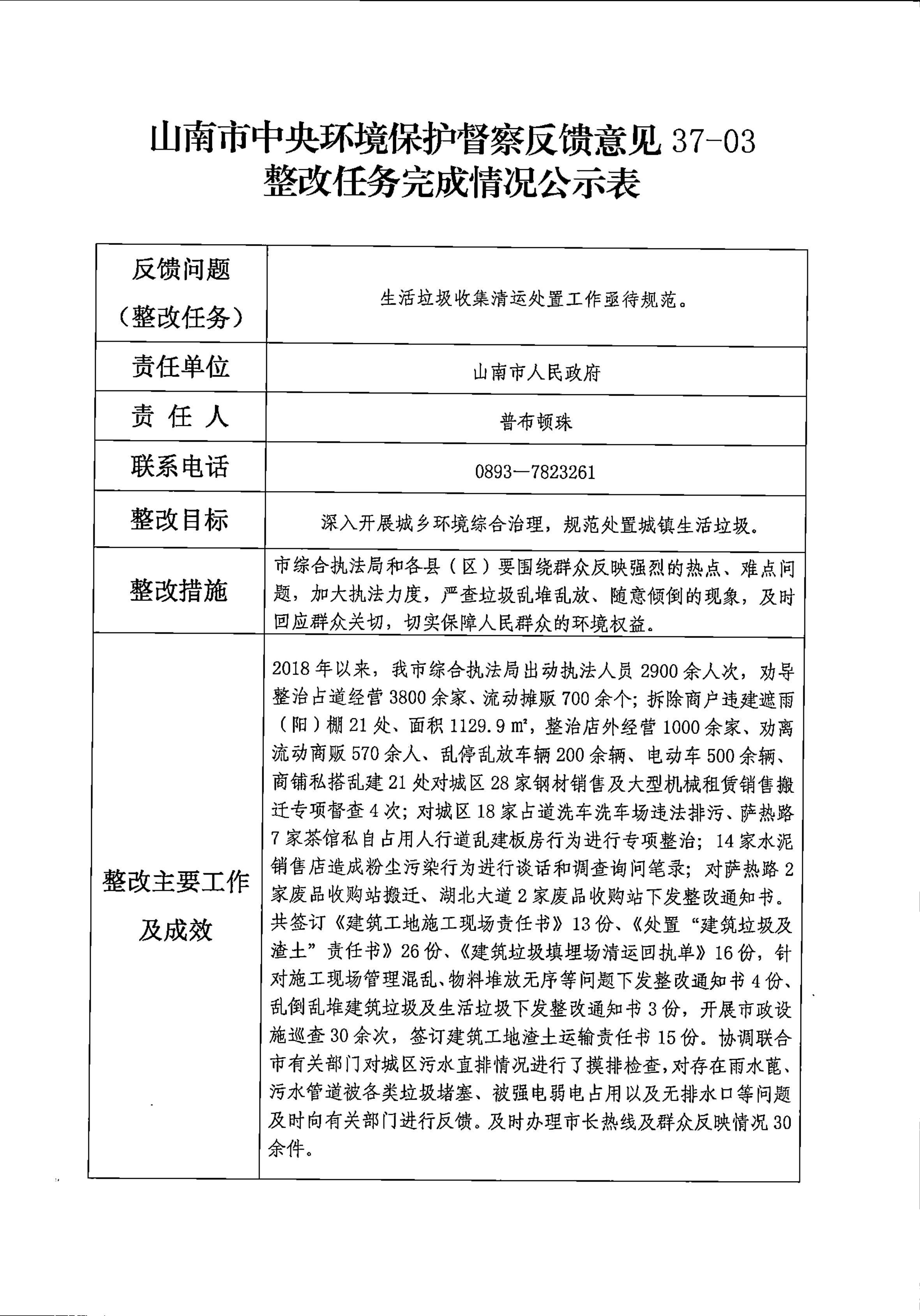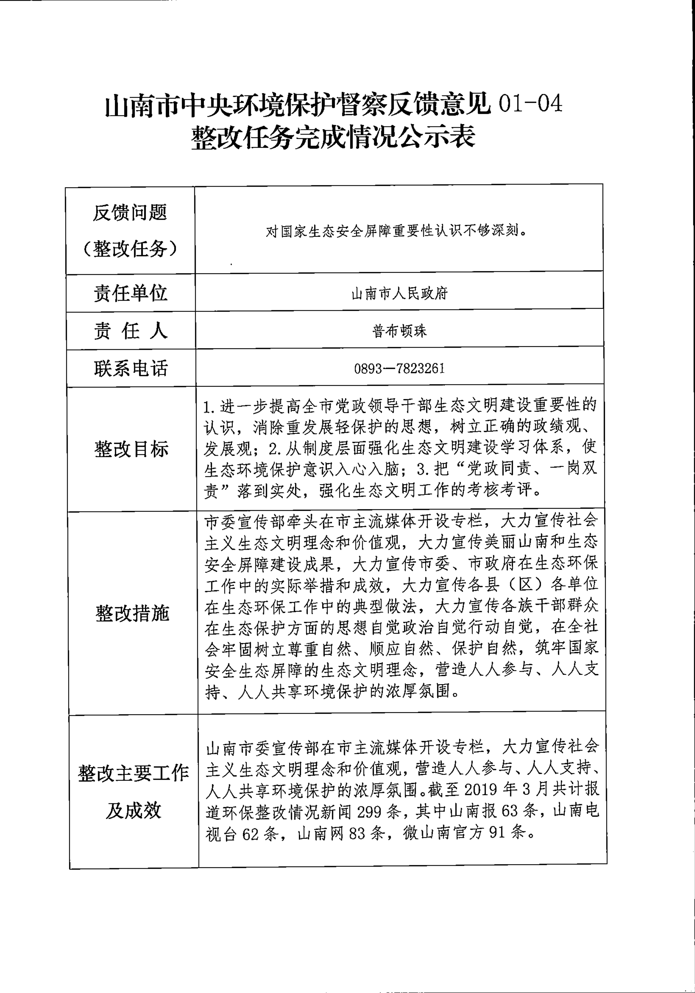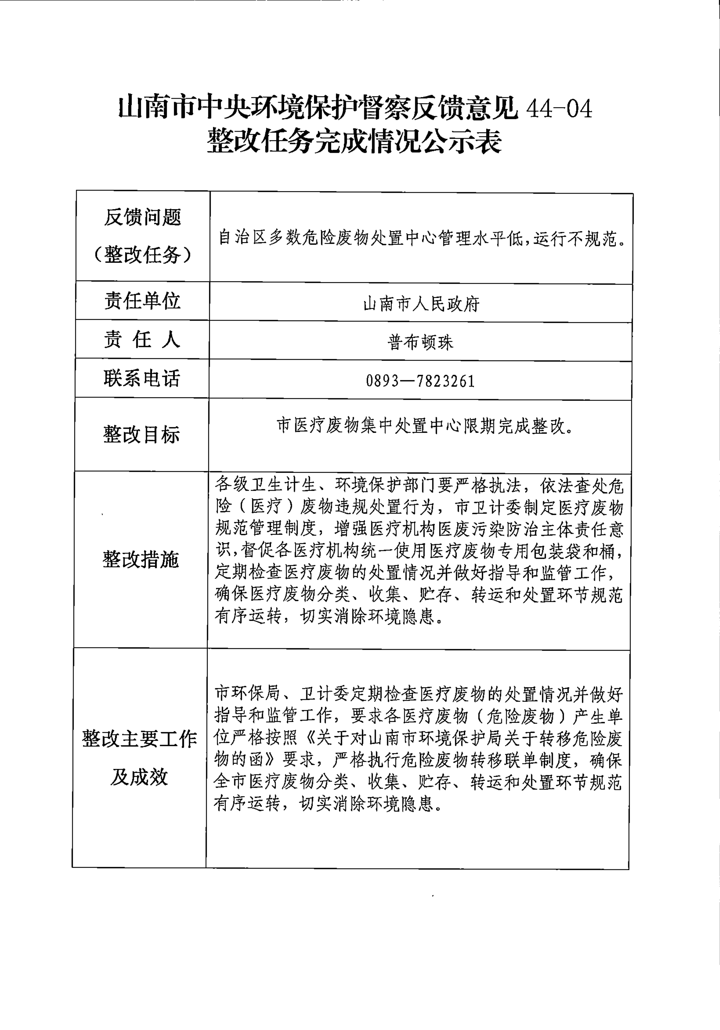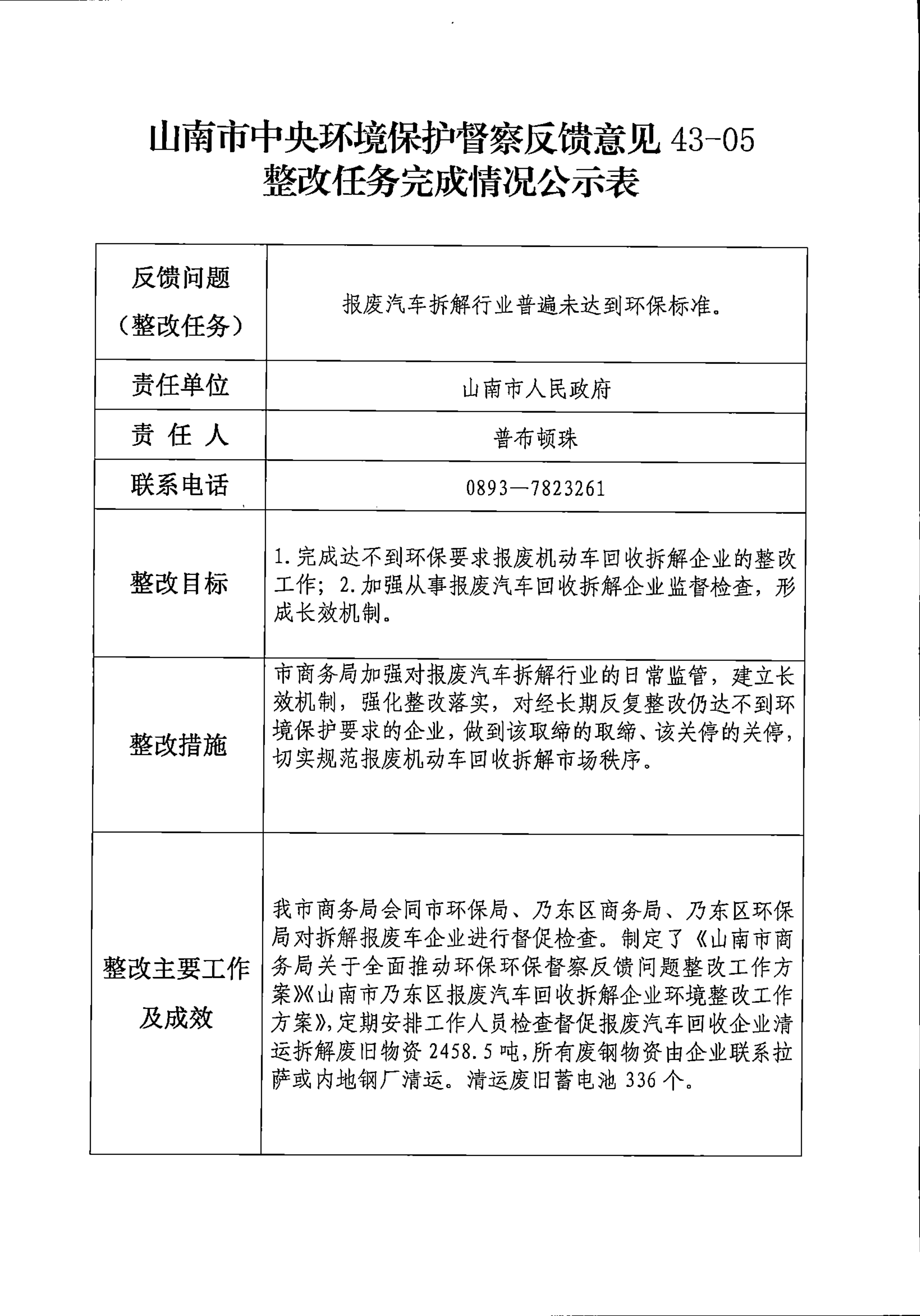 山南市中央环境保护督察反馈意见36项整改任务完成情况公示表