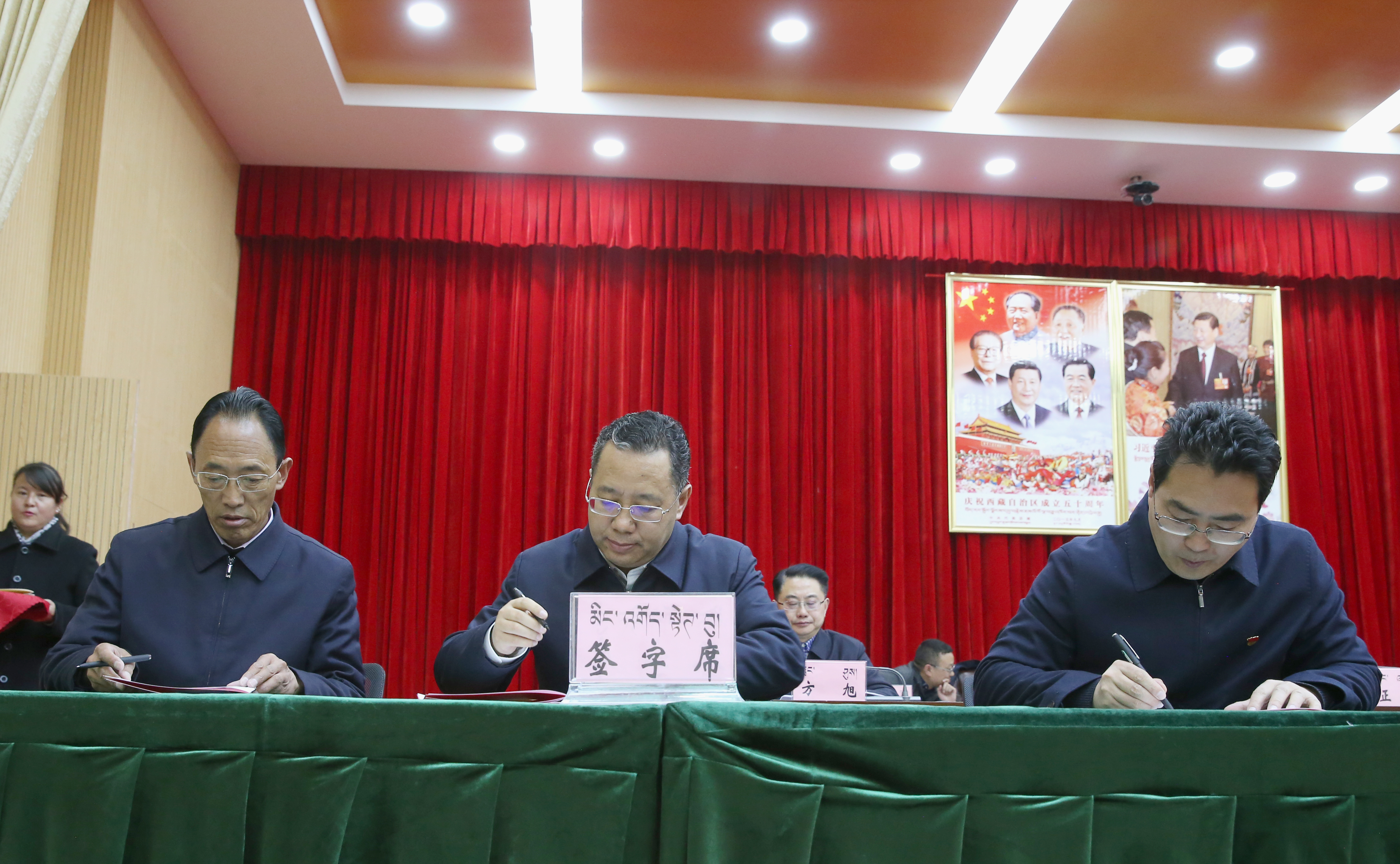 图为普布顿珠与班子成员签订目标责任书。